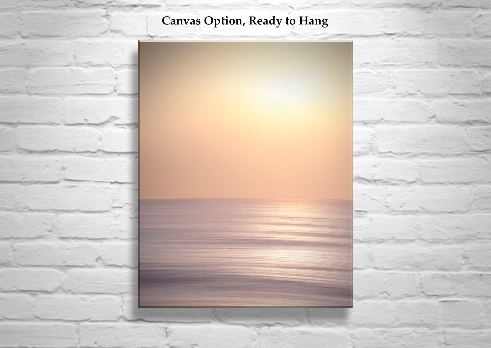 Superb minimalist art! My elegant surreal ocean sunrise scene is on a ready-to-hang canvas wrap, just for you. I artfully rendered it from from my original photograph! Unique, signed art by Murray Bolesta.