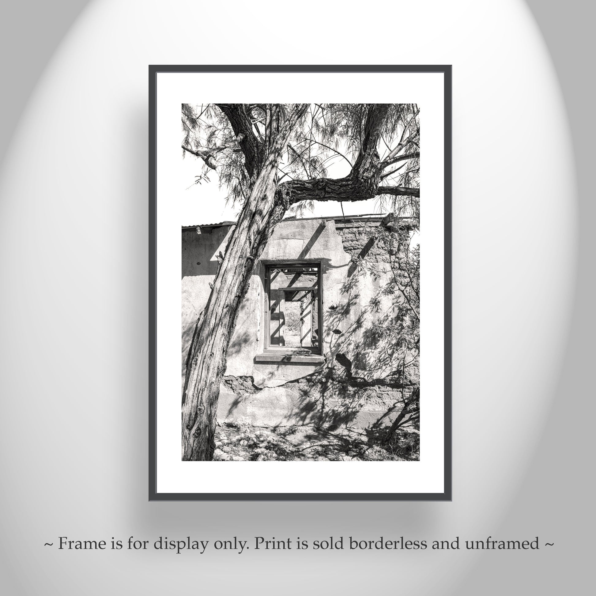 Adobe ruins in old Arizona! This is remote southern Arizona near the Mexico border, and historic ranch country with many telltale signs of the history still existing. Plus, cattle still graze here and cowboys still roam! This image comes in a subtle sepia tone. Original, unique signed art by Murray Bolesta.