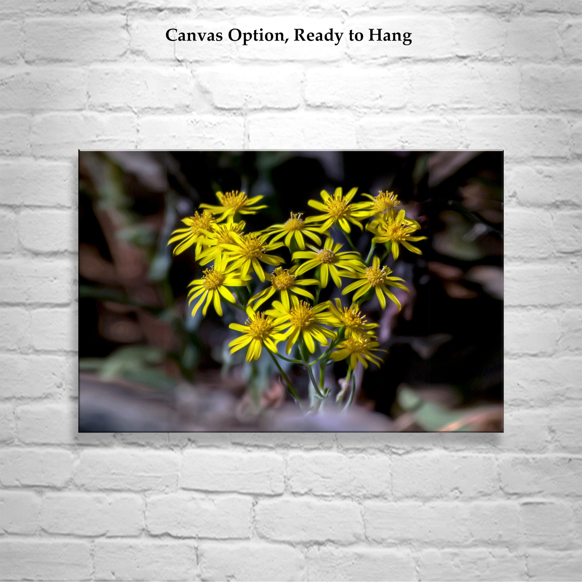 My wonderful wildflower wall art! Rugged Ramanote Canyon of the Atascosa Mountains yield many surprises, as do many precious watery places in the American Southwest. These yellow wildflowers come in countless varieties, and are a bit hard to identify, thus they are often affectionately called DYCs, or Darned Yellow Composites! Original, unique signed art by Murray Bolesta.