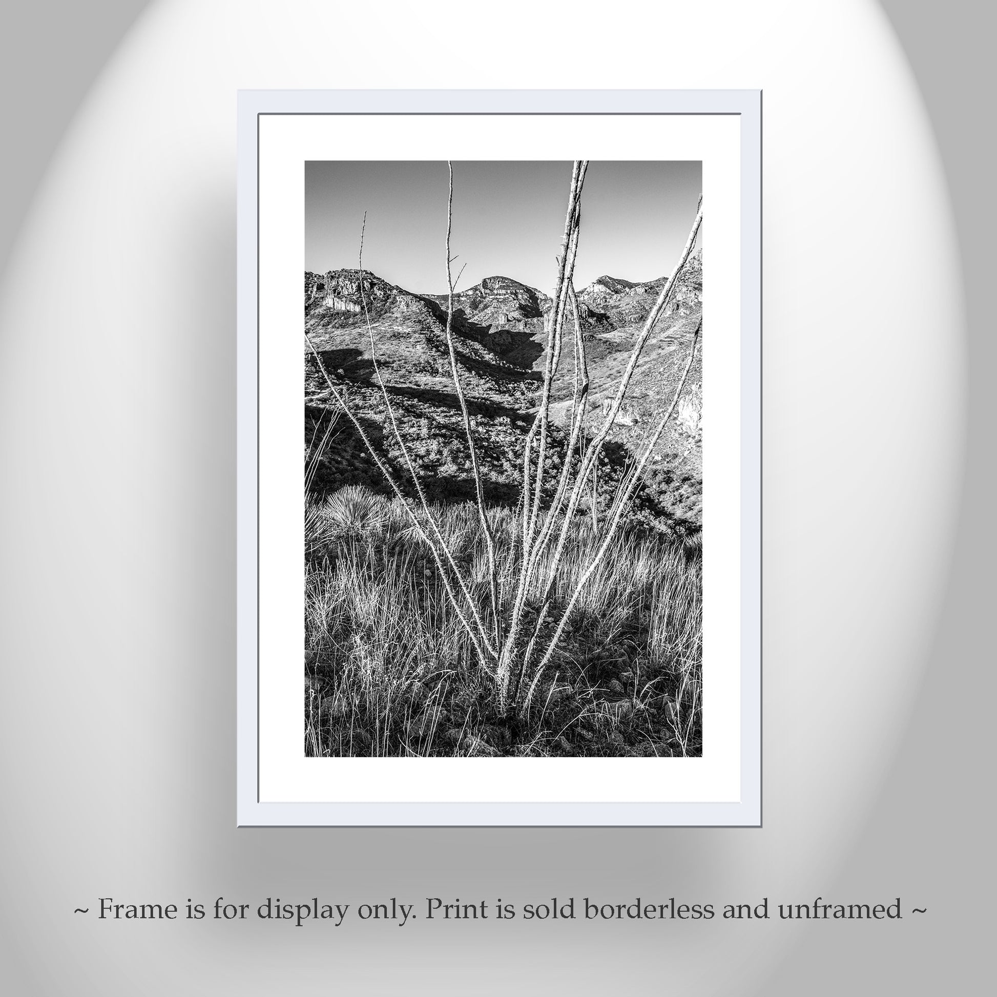 Ramanote Canyon Black and White Arizona Landscape Art with Ocotillo
