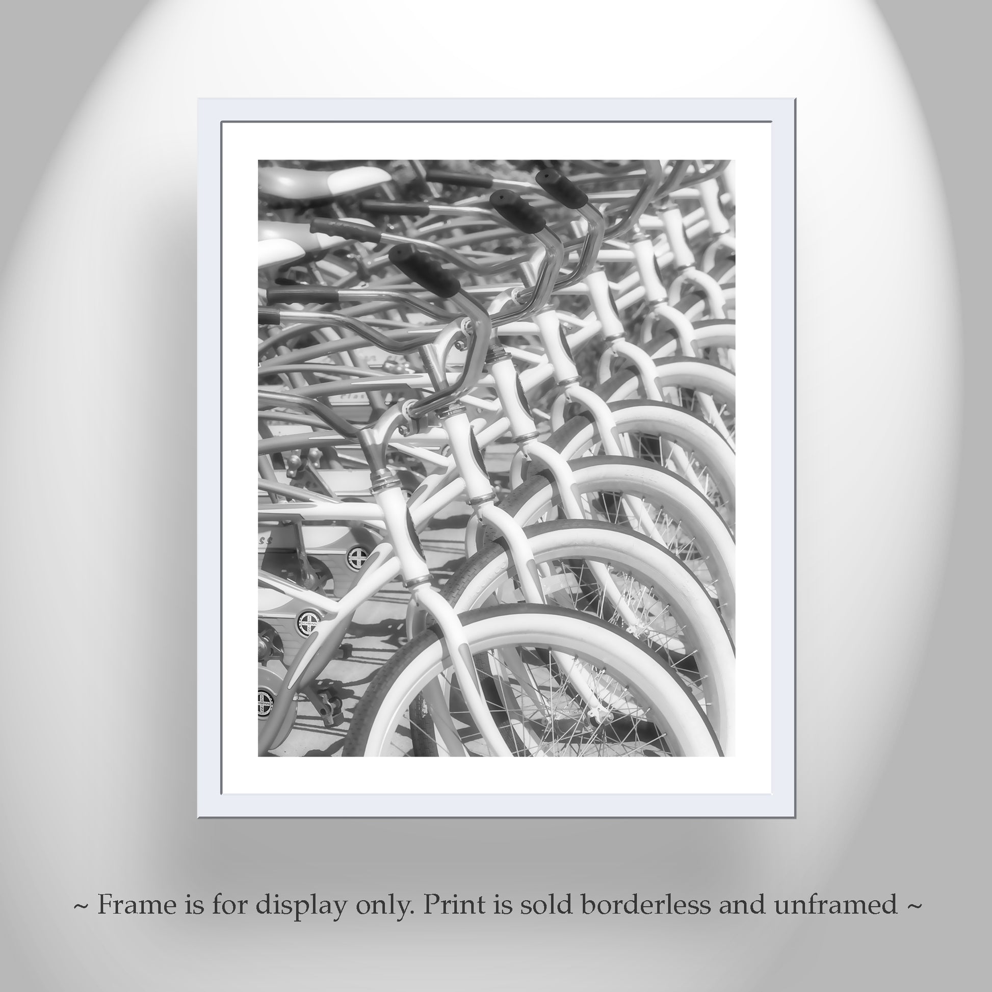 My beautiful black & white bicycle art: an abstracted view of old-fashioned Schwinn beach resort bikes, patiently waiting for riders! I caprured this image at Hotel Del Coronado, San Diego, California. Original, unique signed art by Murray Bolesta!