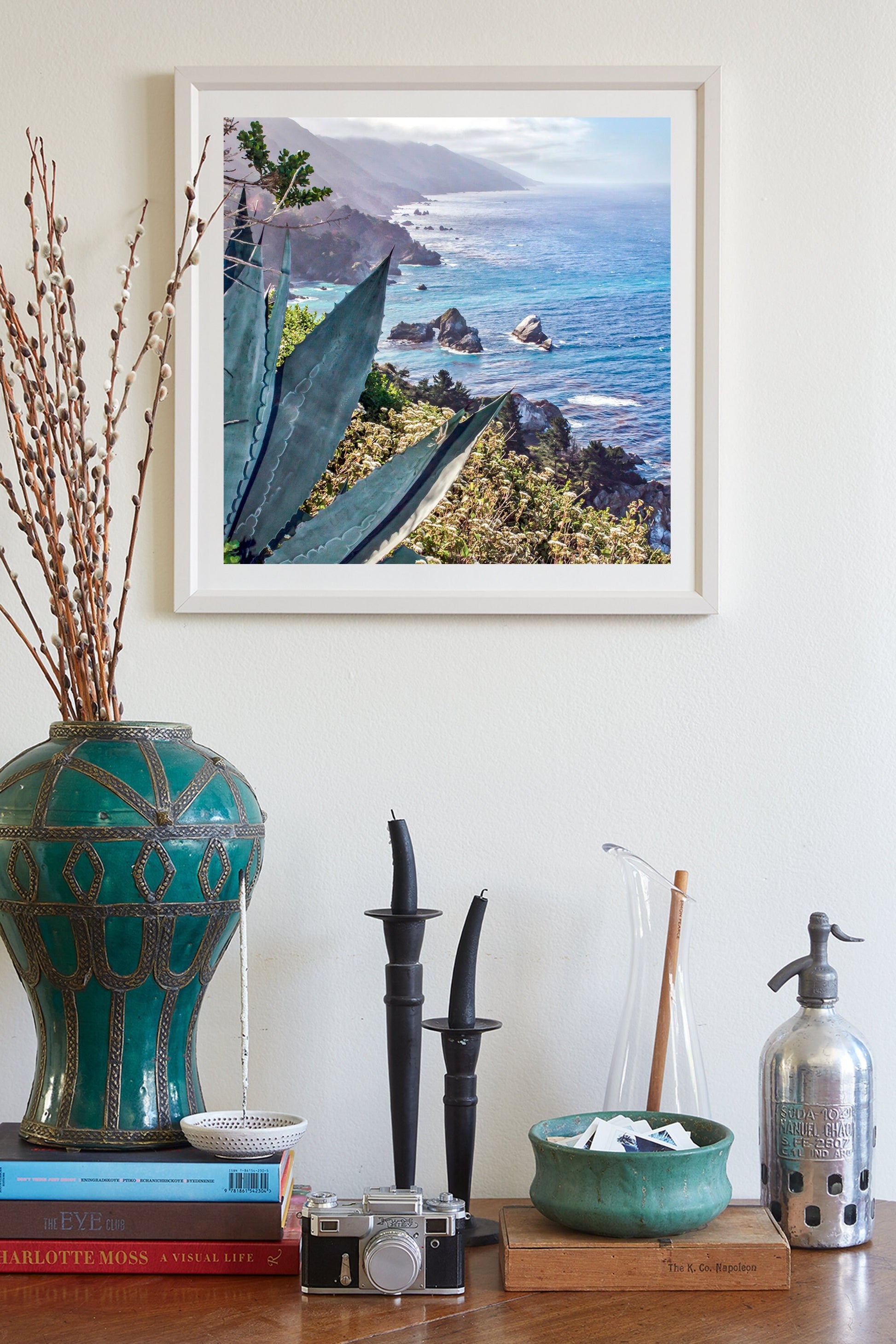 Beautiful blue agave! To beautify your walls, my terrific scene of Big Sur California: a sweeping collision of land and sea! In the foreground, a blue agave intervenes. Original, unique signed art photograph by Murray Bolesta!