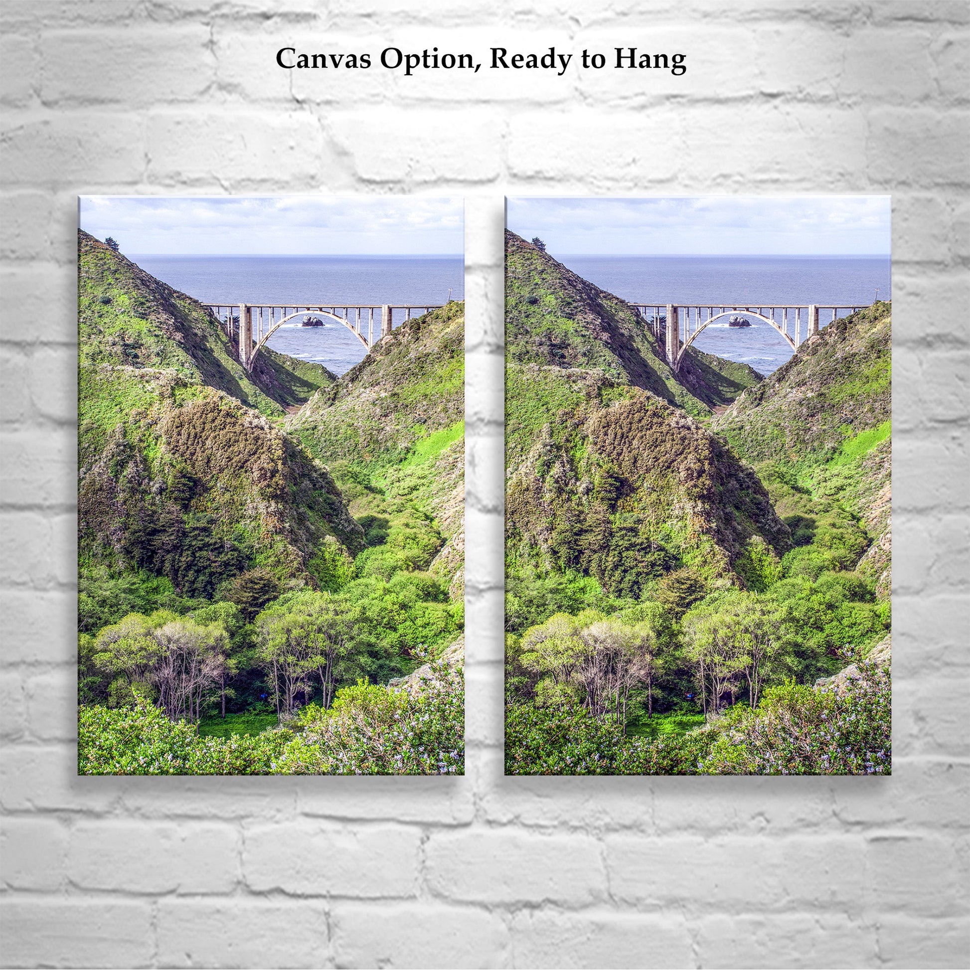 My delightful wall decor photos with Big Sur California's Bixby Creek Bridge! Splendid California coast with its rugged mountains. This item is for 2 prints (diptych) at a discounted set price! Original, unique signed art by Murray Bolesta.