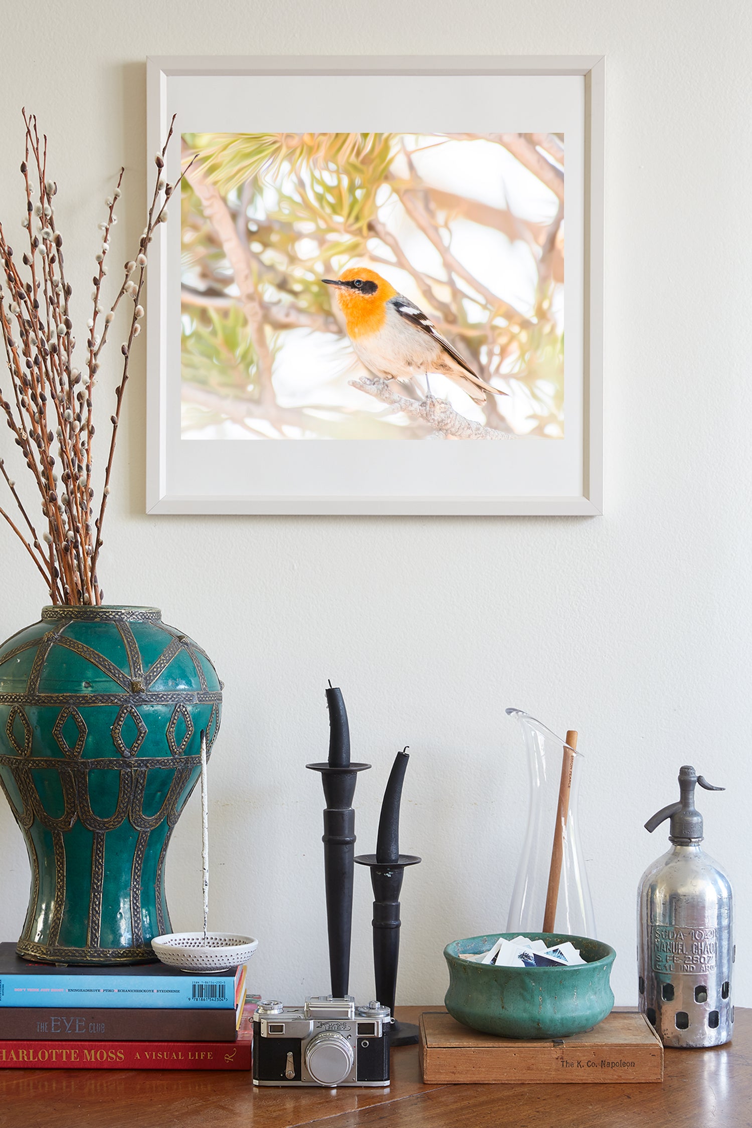 Bird Photography Bright Nature Wall Decor with Pretty Olive Warbler