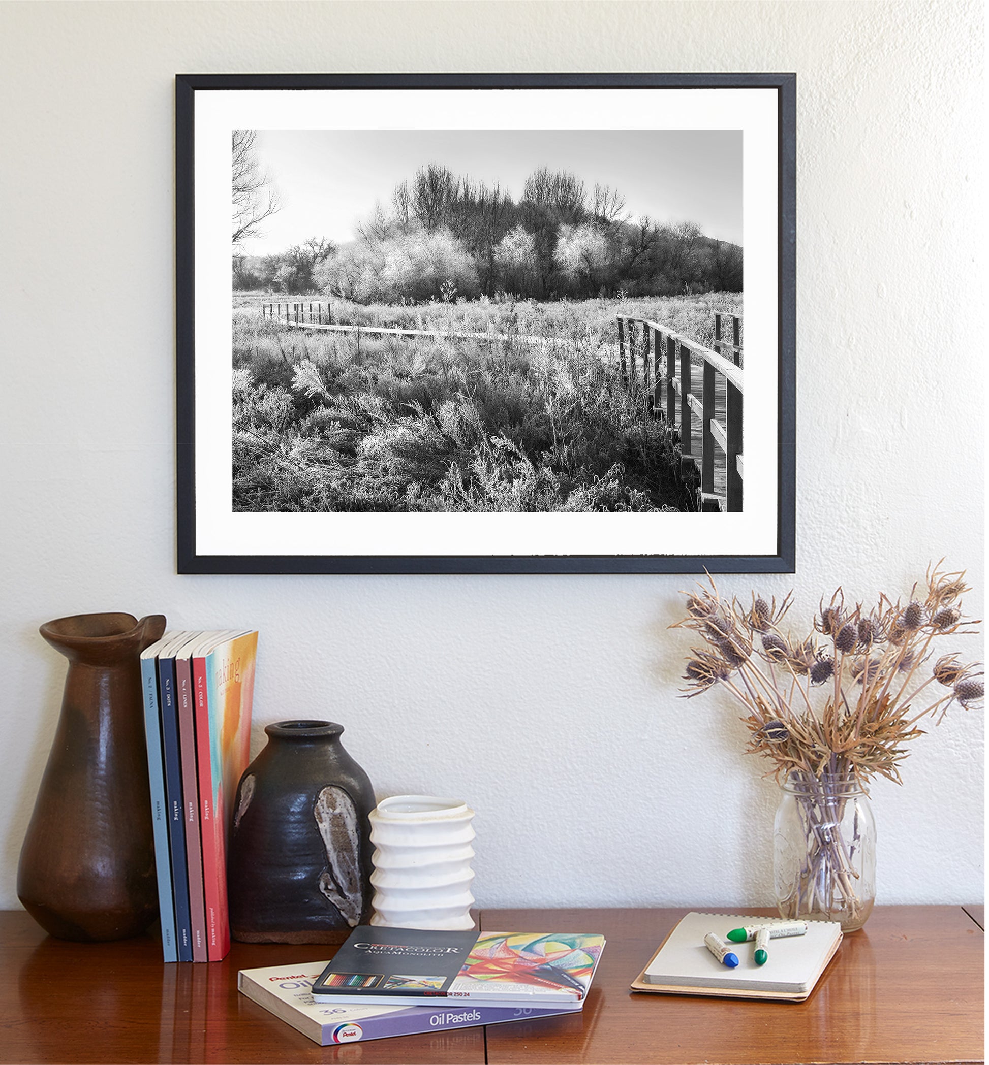 Black & White Fine Art Photo of Winter Frost Wetlands Landscape