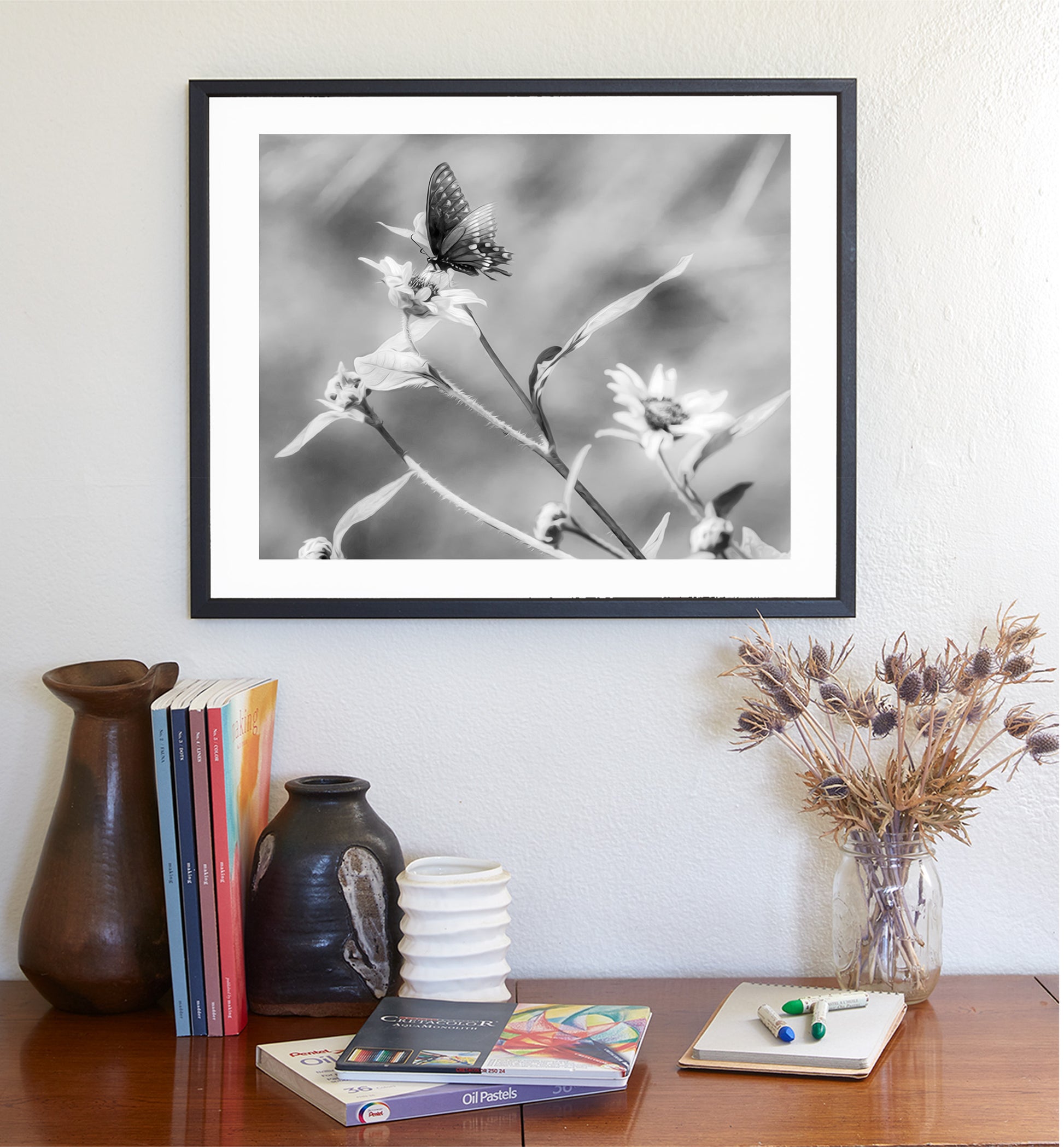 Black & White Butterfly Art | Elegant Swallowtail on Sunflower