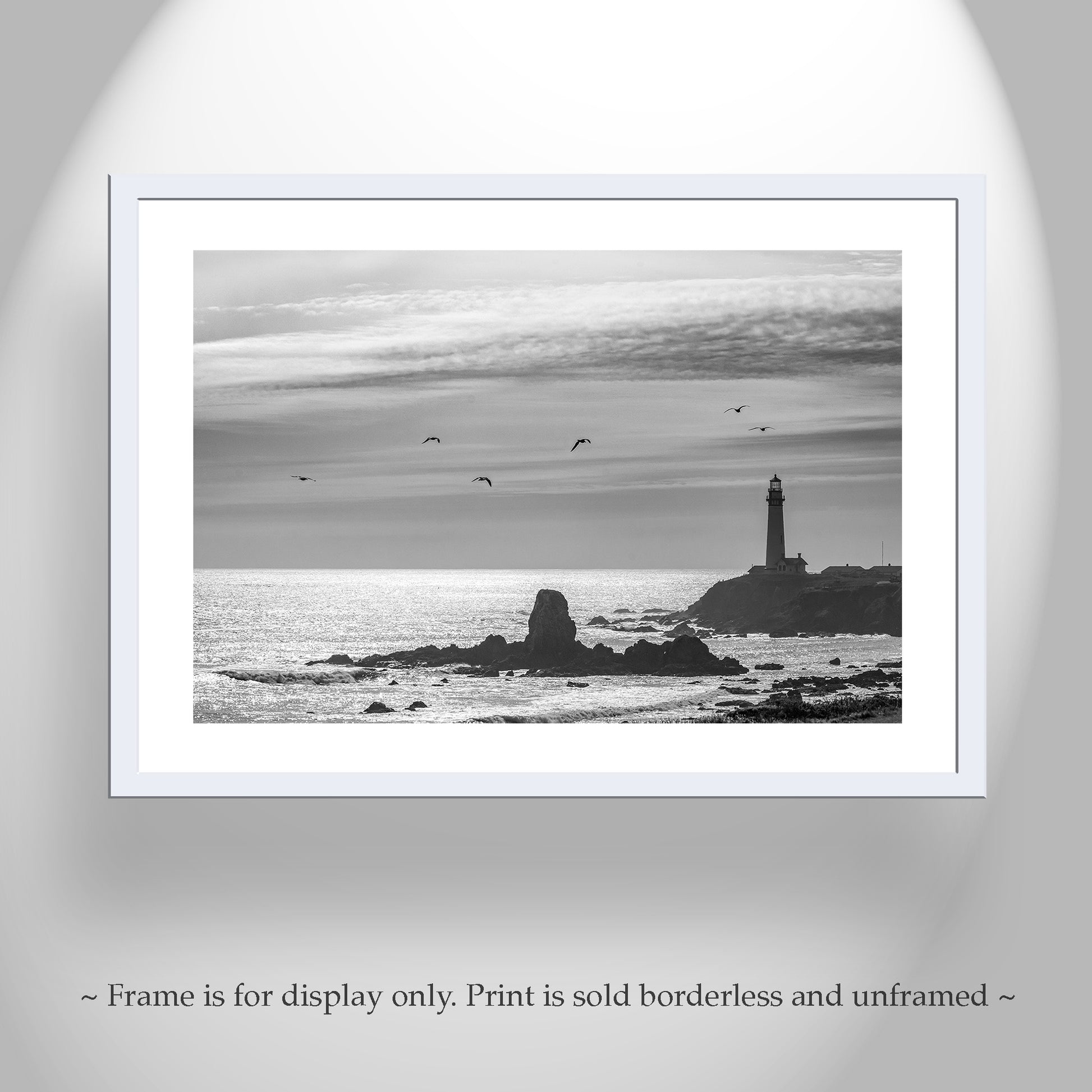 My beautiful black & white ocean photography with Pigeon Point California lighthouse! California coast! Original, unique signed art by Murray Bolesta.