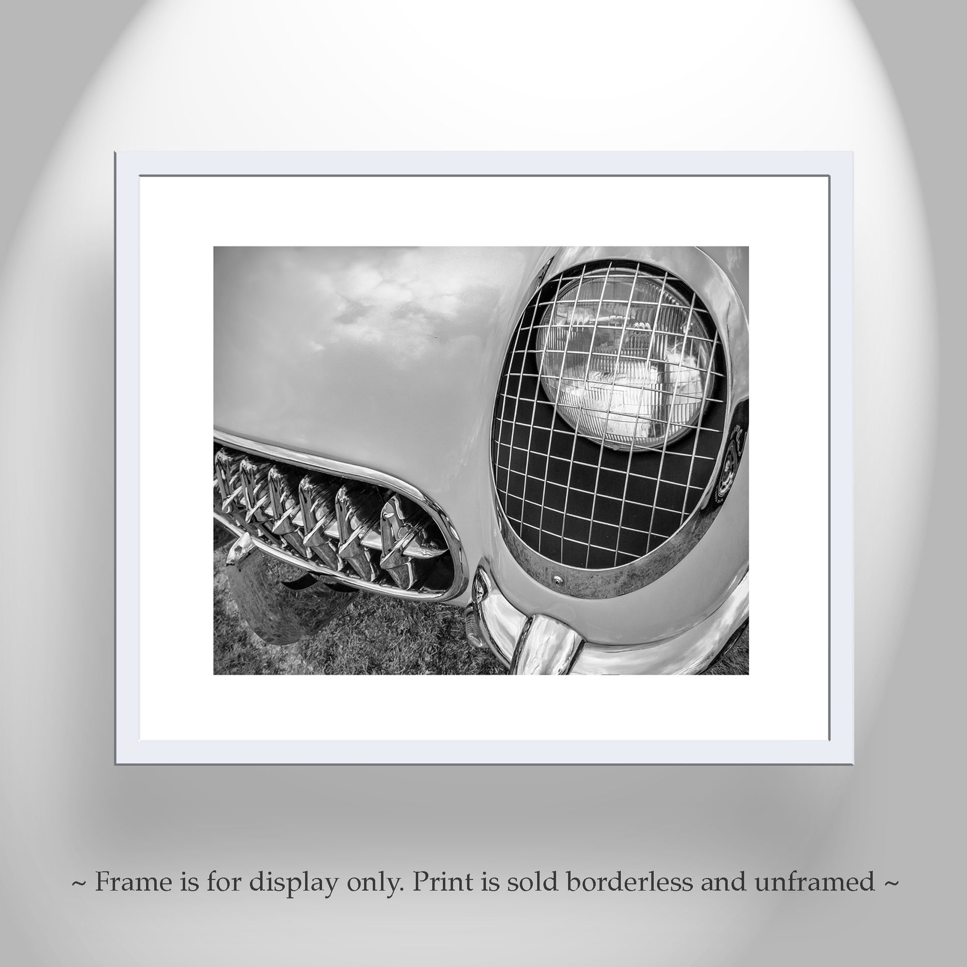 My beautiful black & white Corvette art for the vintage ‘Vette enthusiast. This is the earliest Corvette, with wire headlight covers for the first 3 model years: 1953-5!