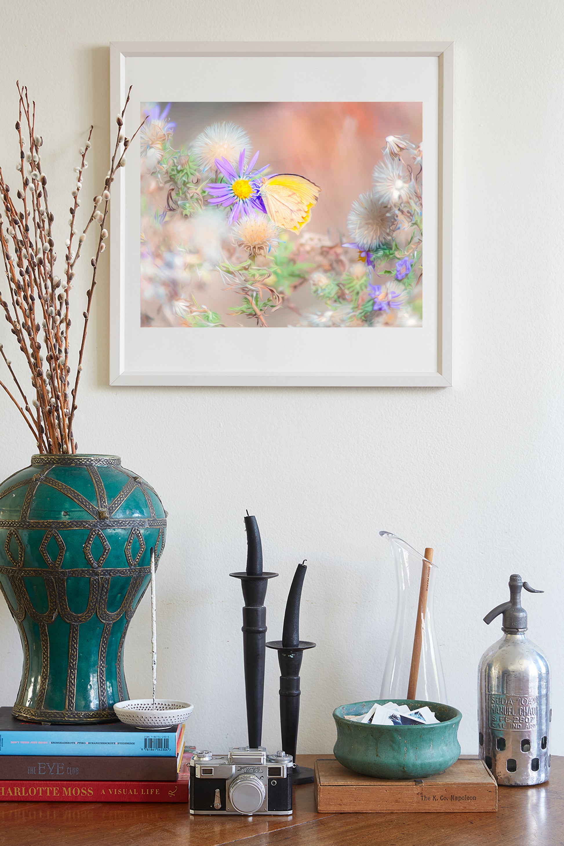 Pretty butterfly art! To beautify your walls, my splendid spring butterfly photograph. This is a Mexican Yellow butterfly captured on camera by me in the Santa Rita Mountains of the Arizona-Mexico borderlands! Original, unique signed art by Murray Bolesta!
