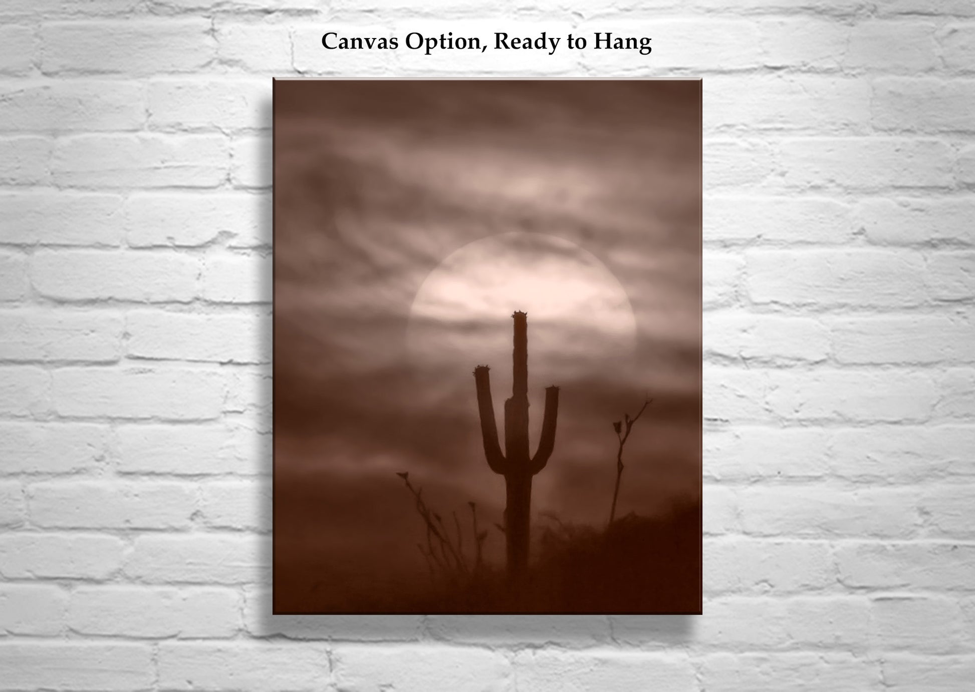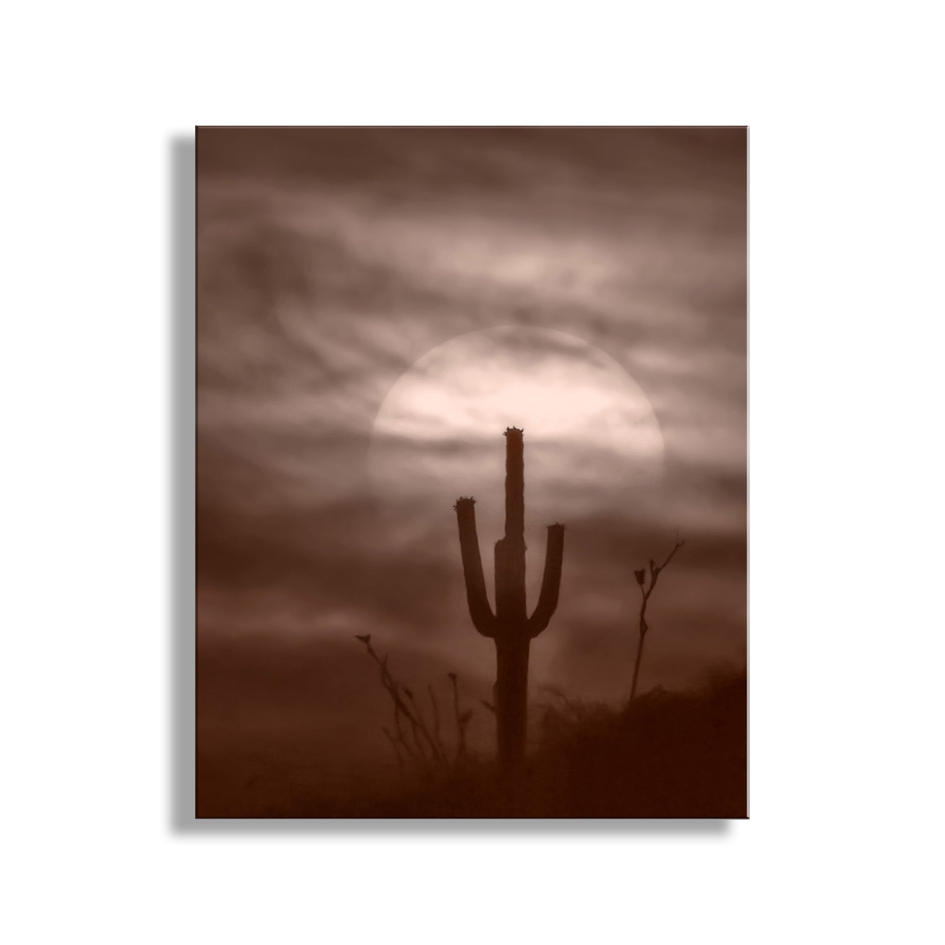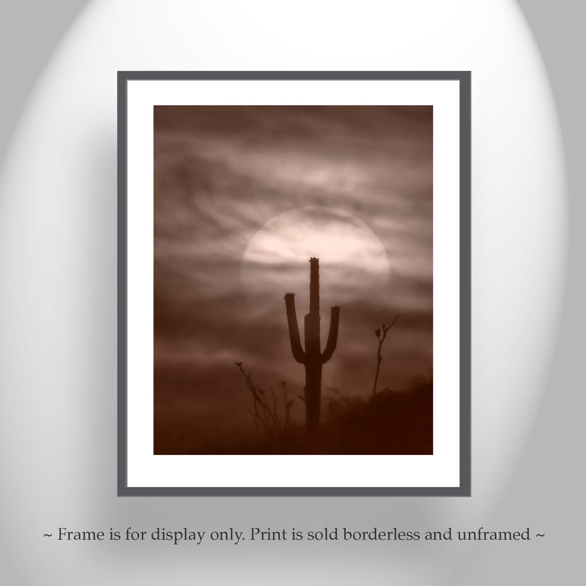 Unique sepia cactus art! For your walls, my splendid art print of a saguaro desert sunset! I captured this Sonoran Desert scene in the immense Tohono O'odham Indian Nation on the Arizona-Mexican border. Original, unique signed art by Murray Bolesta!