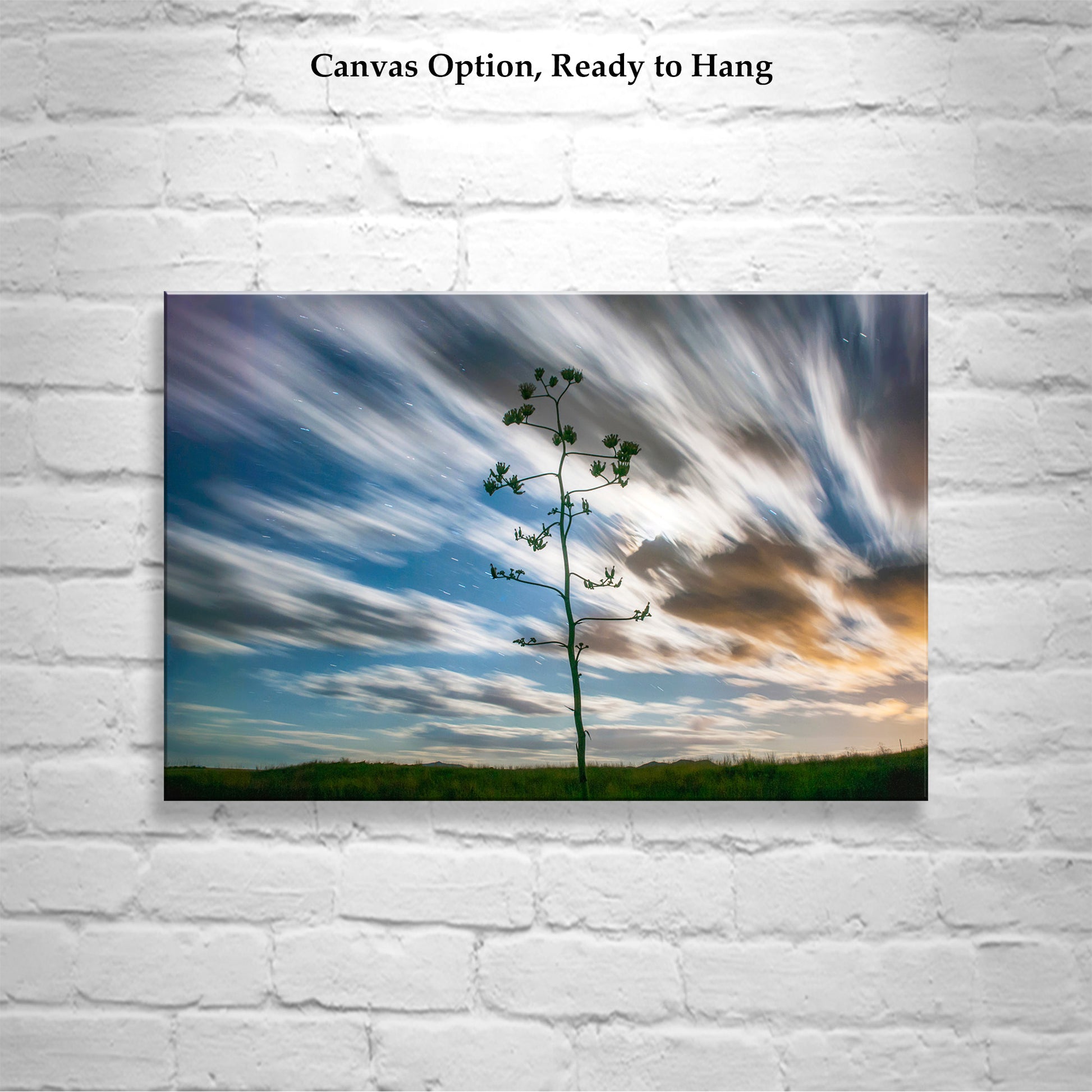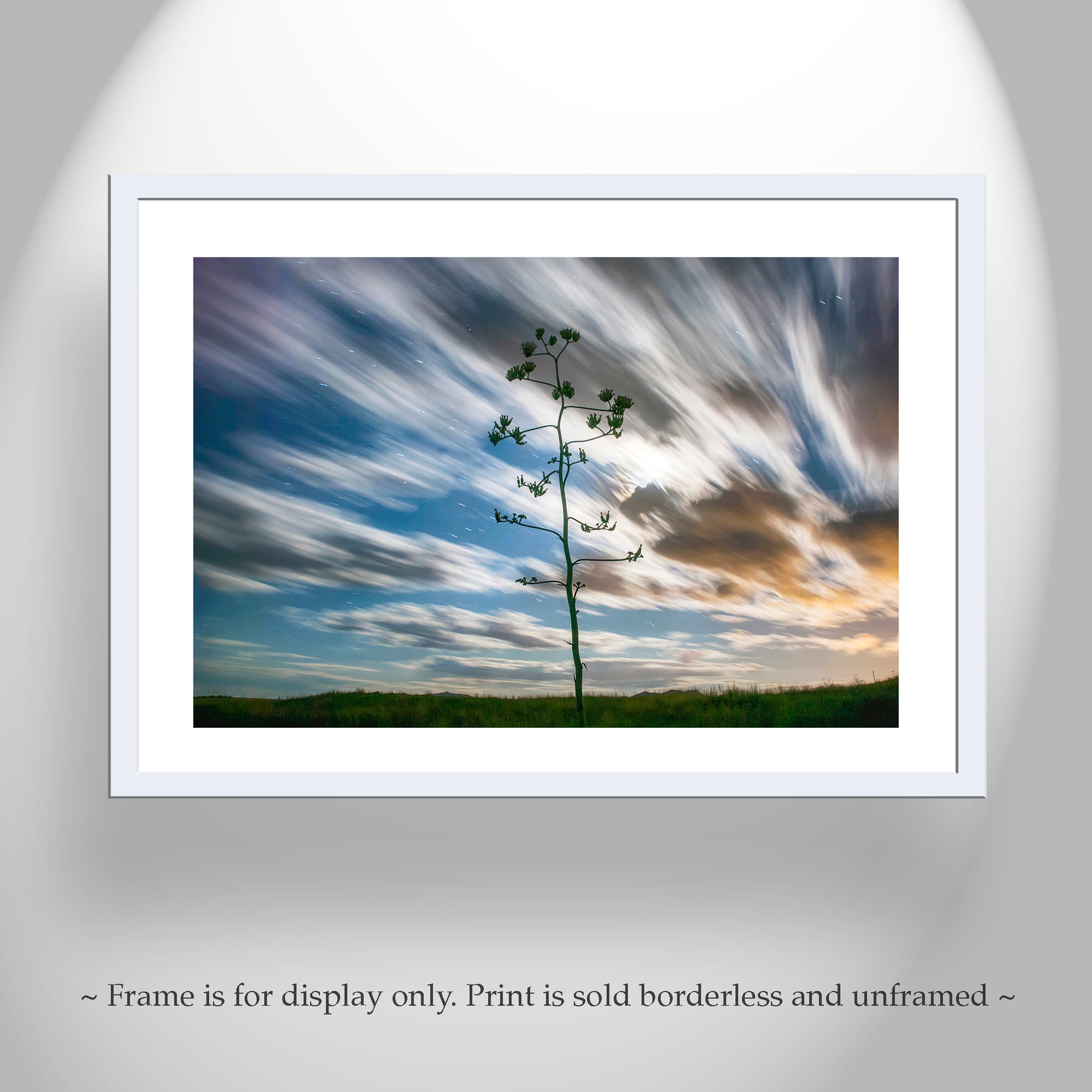 My moody wall art print with night photography and moonlight with agave century plant! I captured this splendid scene at San Rafael Valley on the Mexico-Arizona border: simple, serene, stylish! Original, unique signed art by Murray Bolesta.