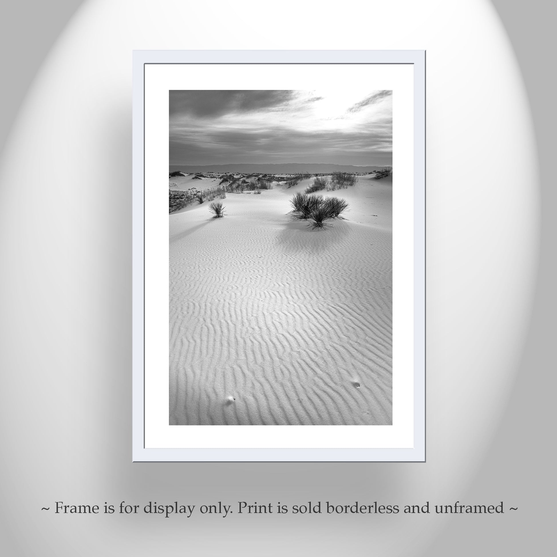 Beautiful black & white desert art! For your wall decoration, my splendid nature art in a desert picture: I captured this peaceful scene amongst the remote sand dunes of Southwestern USA, planet Earth. Original, unique signed art by Murray Bolesta!