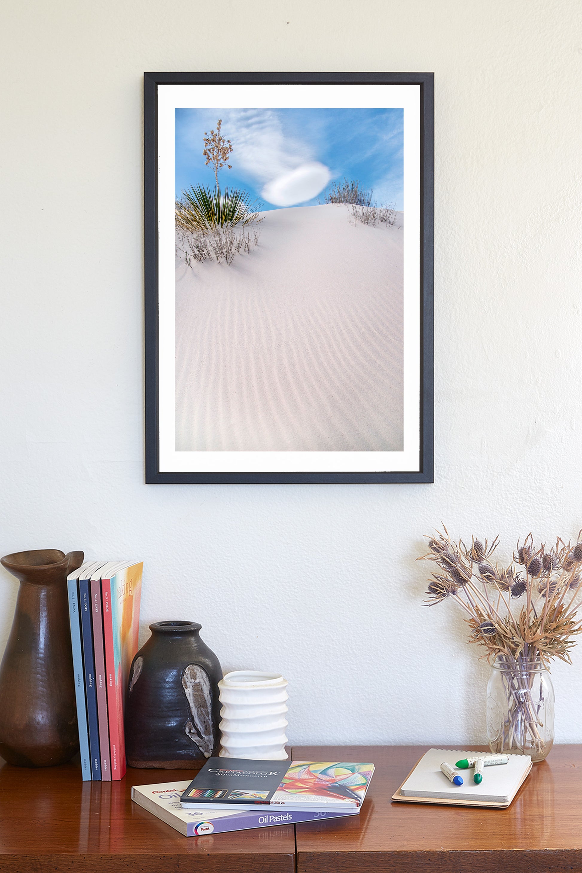 New Mexico dune art, captured by me amongst the shifting white gypsum sands of the southwest American desert! One my favorite works of minimalist art. Original, unique signed art by Murray Bolesta.