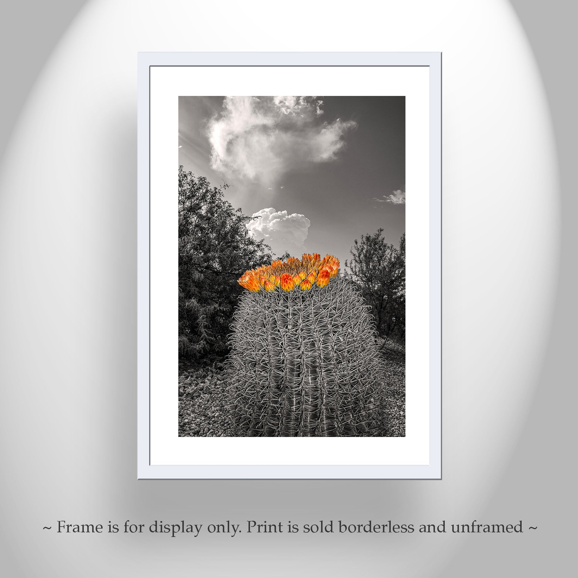 Desert Sky Art Print with Barrel Cactus as Unique Southwest Decor