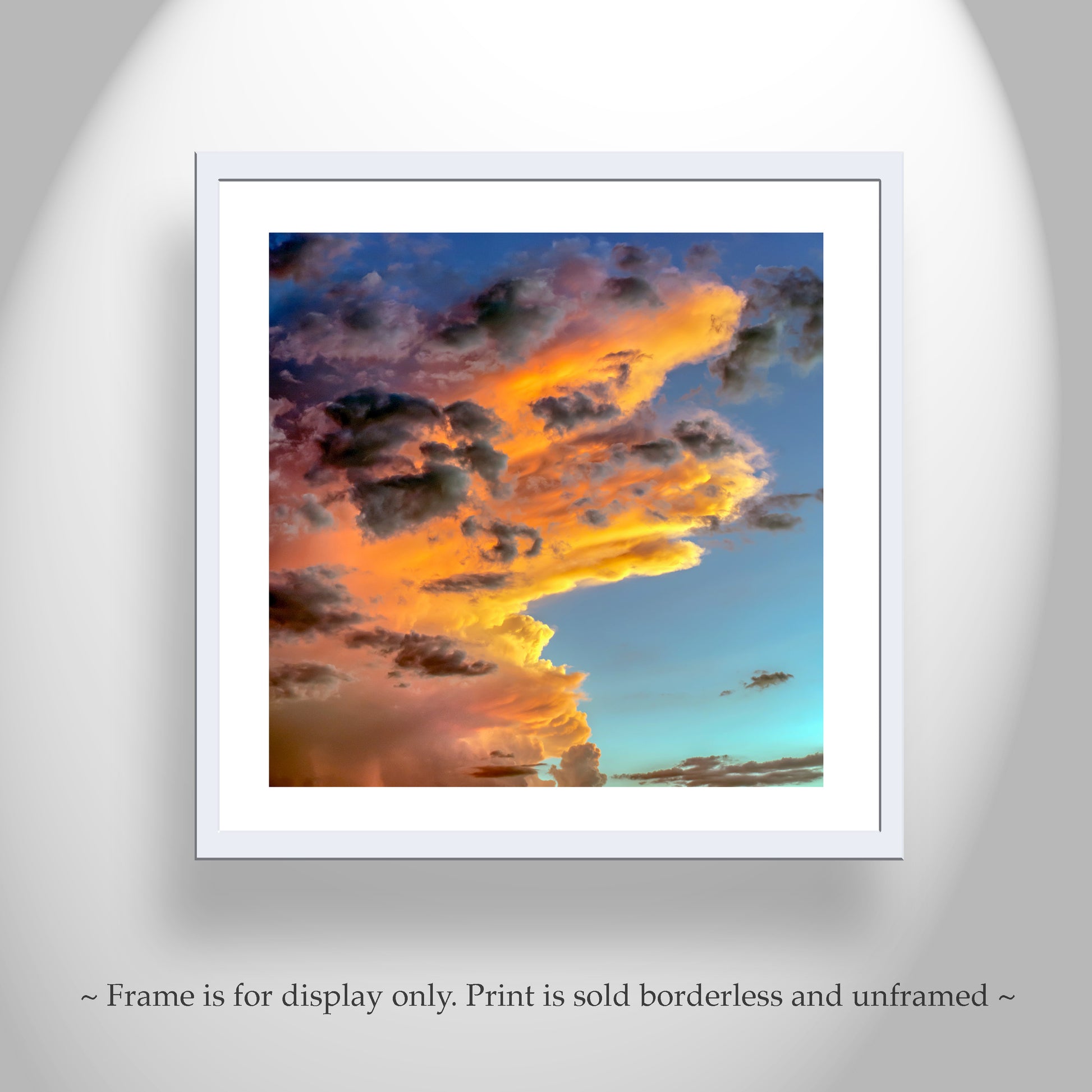 My striking sky & clouds sunset photograph for your walls: the drama of storm clouds ablaze with the setting sun, captured on camera by me as I roamed the Arizona desert! Original, unique signed art by Murray Bolesta.