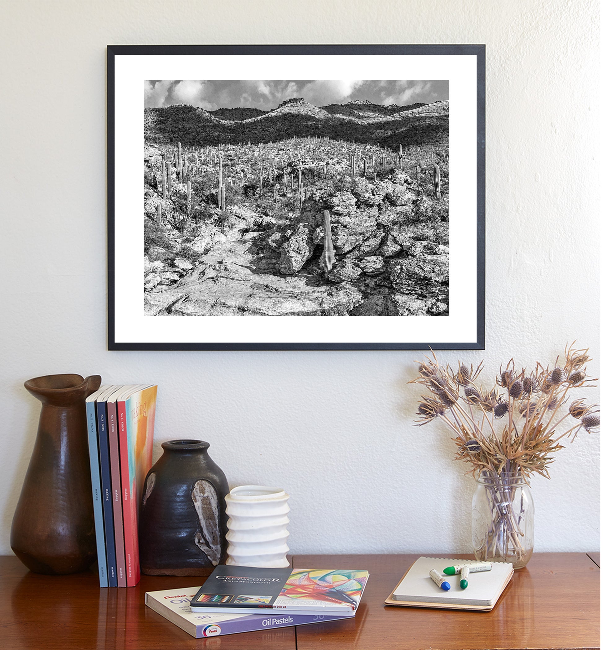 Desert Wall Decor with Black and White Tucson Arizona Landscape