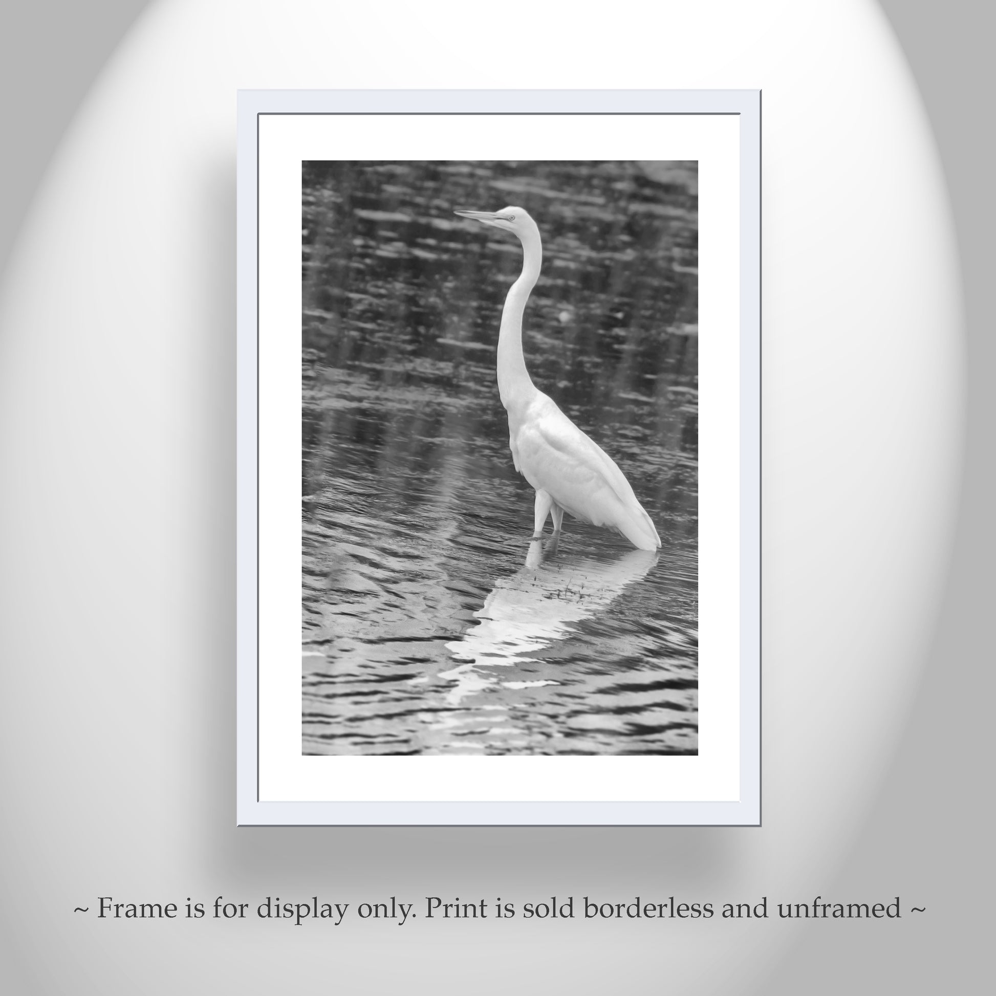 White Egret Bird Print in Black and White | Arizona Wetlands Avian Artwork