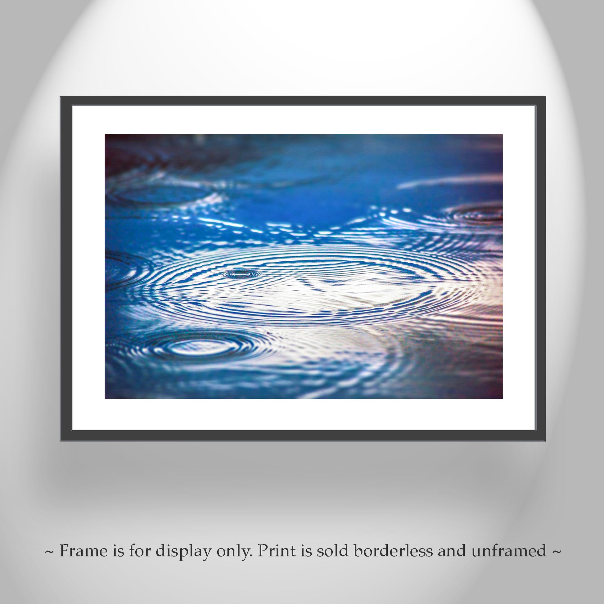 Fine Art Nature Print for Home with Indigo Blue Water Art with Raindrops