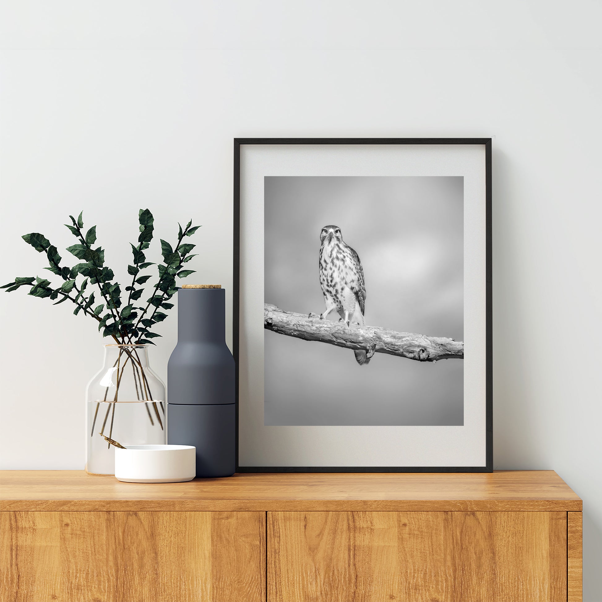 Hawk Bird Art Print | Minimalist Avian Wall Decor in Black and White