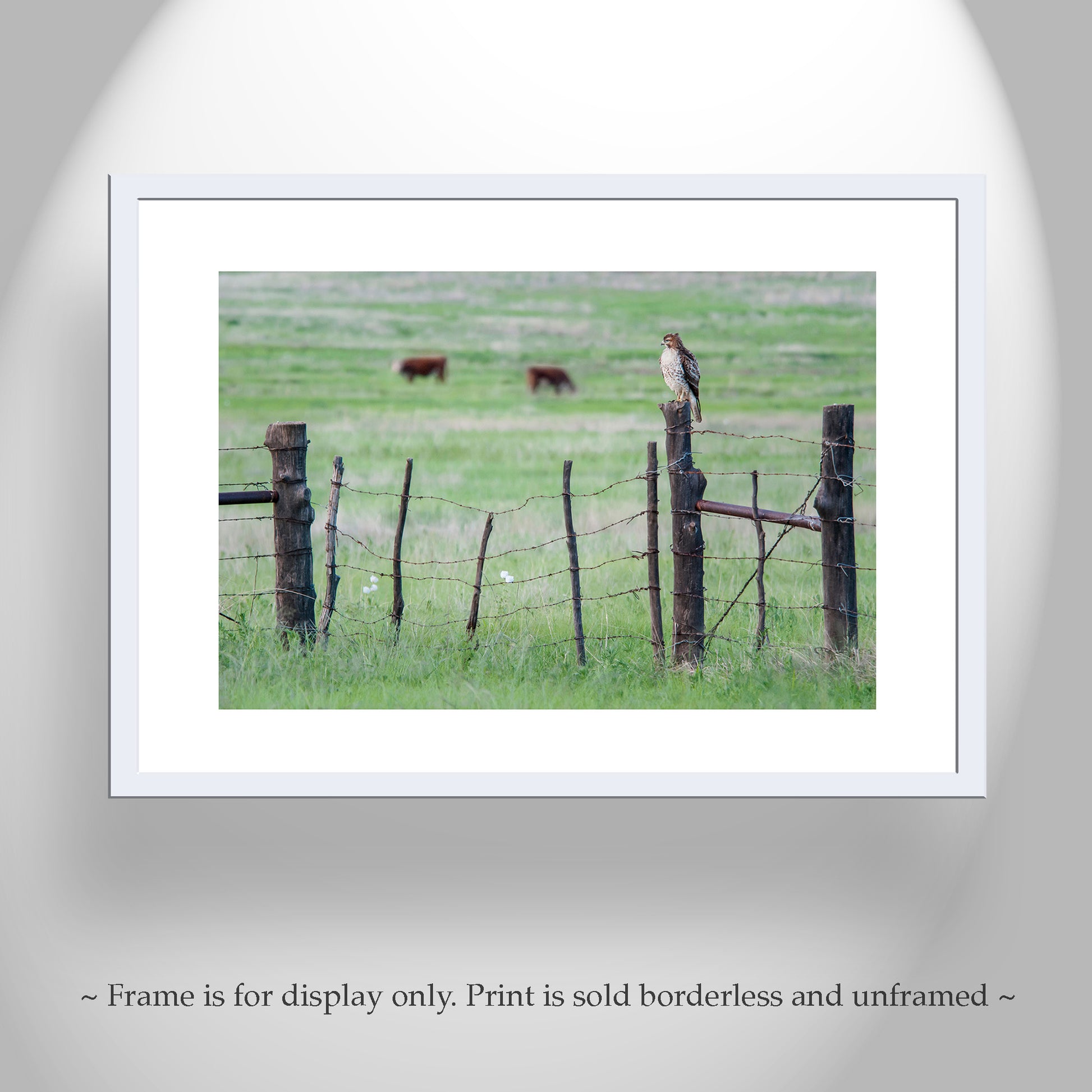 My rustic ranch art! Here's a Red-tailed hawk resting on a barbed wire fence with grazing cattle in the background. I captured this image in the remote ranch lands of the Arizona-Mexico border, planet Earth! This is San Rafael Valley. Original, unique signed art by Murray Bolesta.