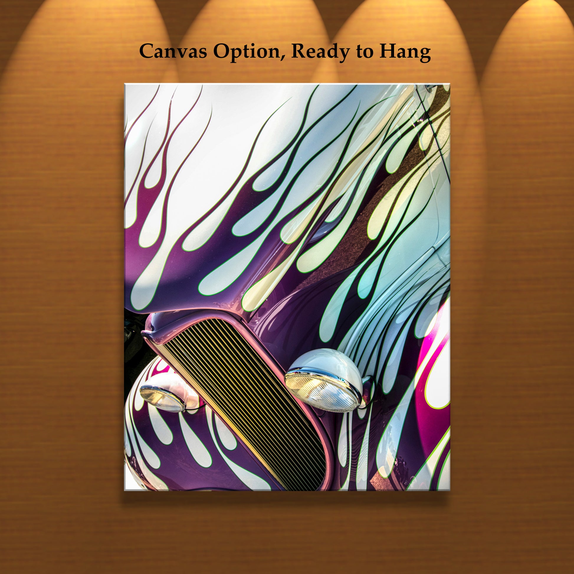Hot Rod Muscle Car with Blue Hood Flames as Car Collector Wall Decor