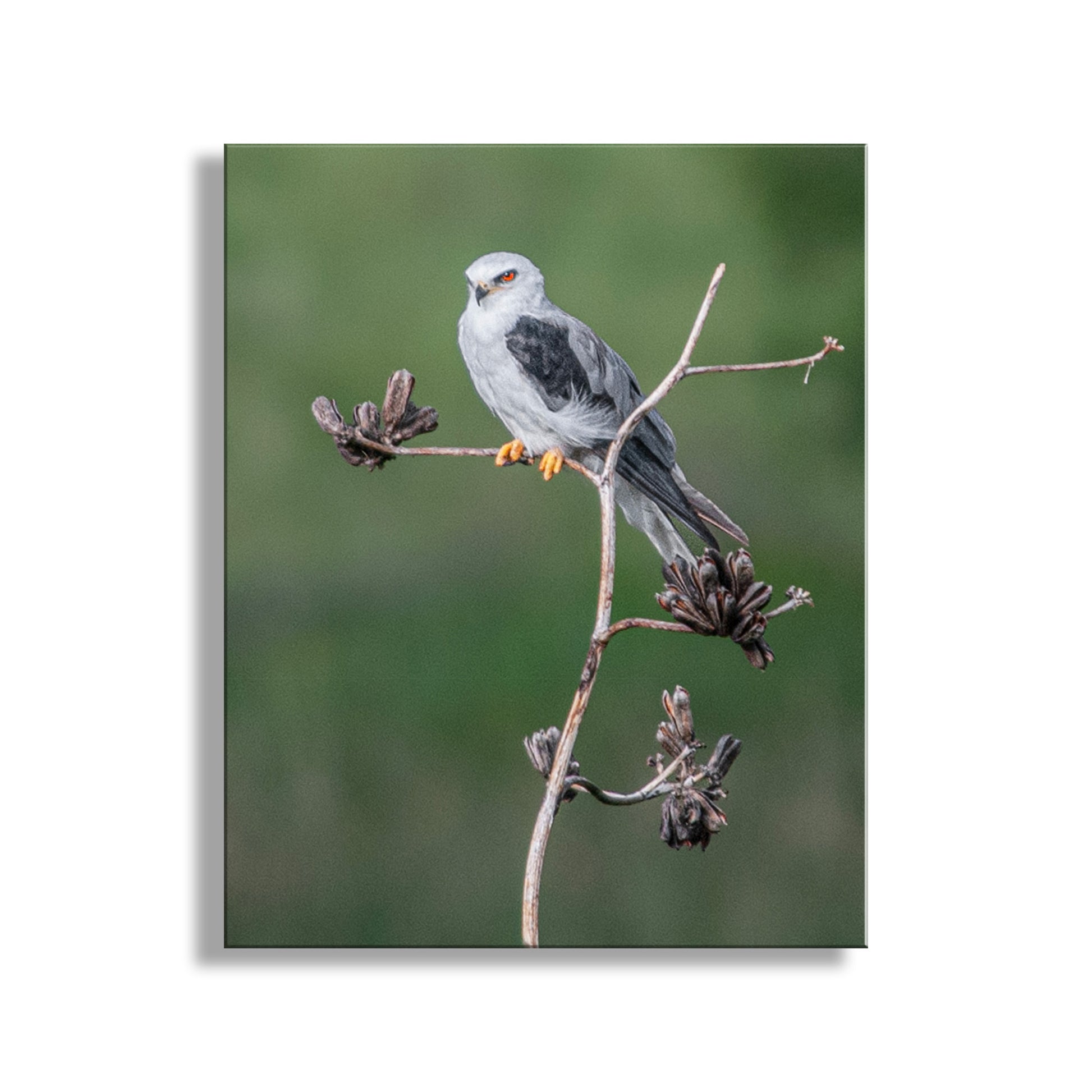 Beautiful bird art photography! This is an elegant Black-winged kite bird resting on a spent agave century plant. I captured this scene on camera in the magnificent San Rafael Valley at the Mexico-Arizona border, at Bog Hole! Original, unique signed art by Murray Bolesta.