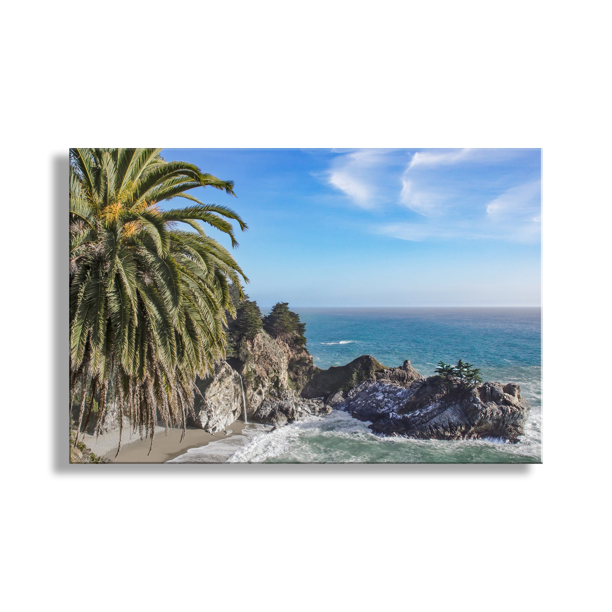 Beautiful McWay Falls! My splendid California beach photography for your walls: this is the Big Sur coast with a magnificent palm tree to boot! Original, unique art for your walls by Murray Bolesta.