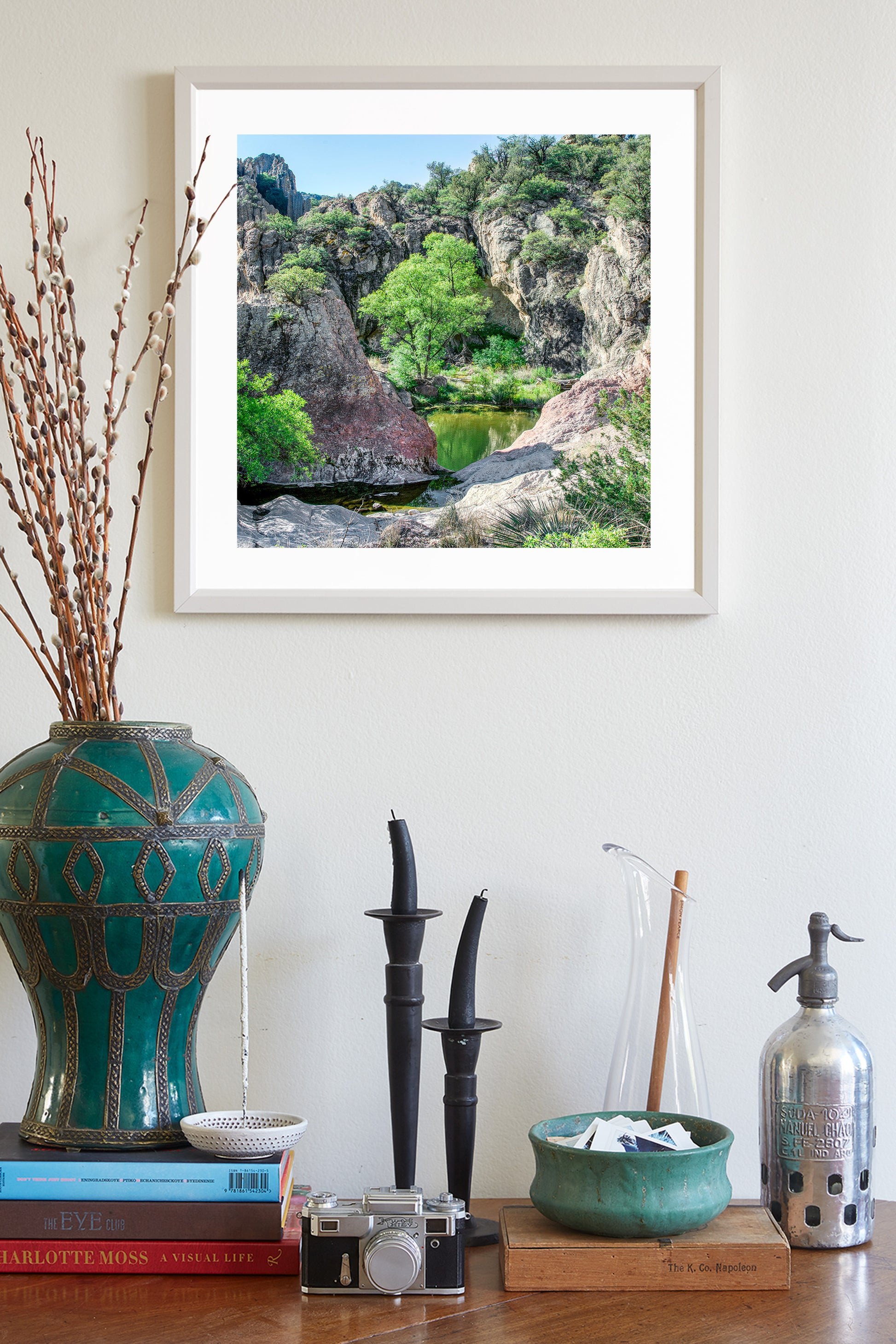 Amazing southern Arizona desert canyon art! A rough stretch of this canyon to get through, but with rewards around every turn, including pools of water and Sycamore trees. I am deep in a remote, precious wilderness on the Mexico-Arizona border! Original, unique signed art by Murray Bolesta.