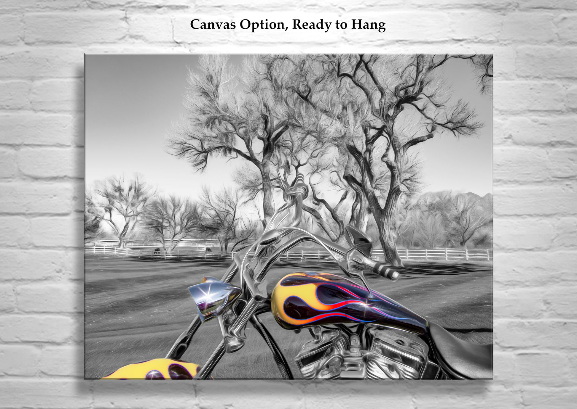 Motorcycle Art Print with Custom Show Bike in Black and White