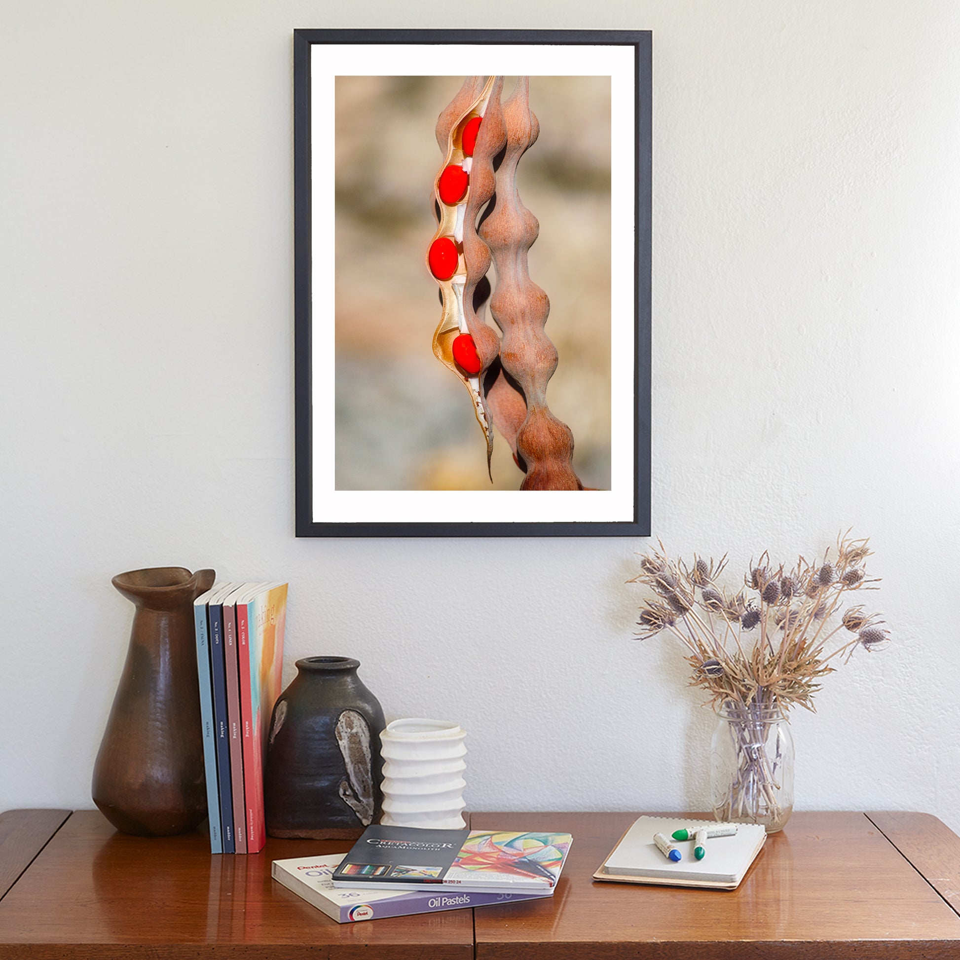 Nature Photography with Coral Bean Pod | Desert Botanical Wall Art
