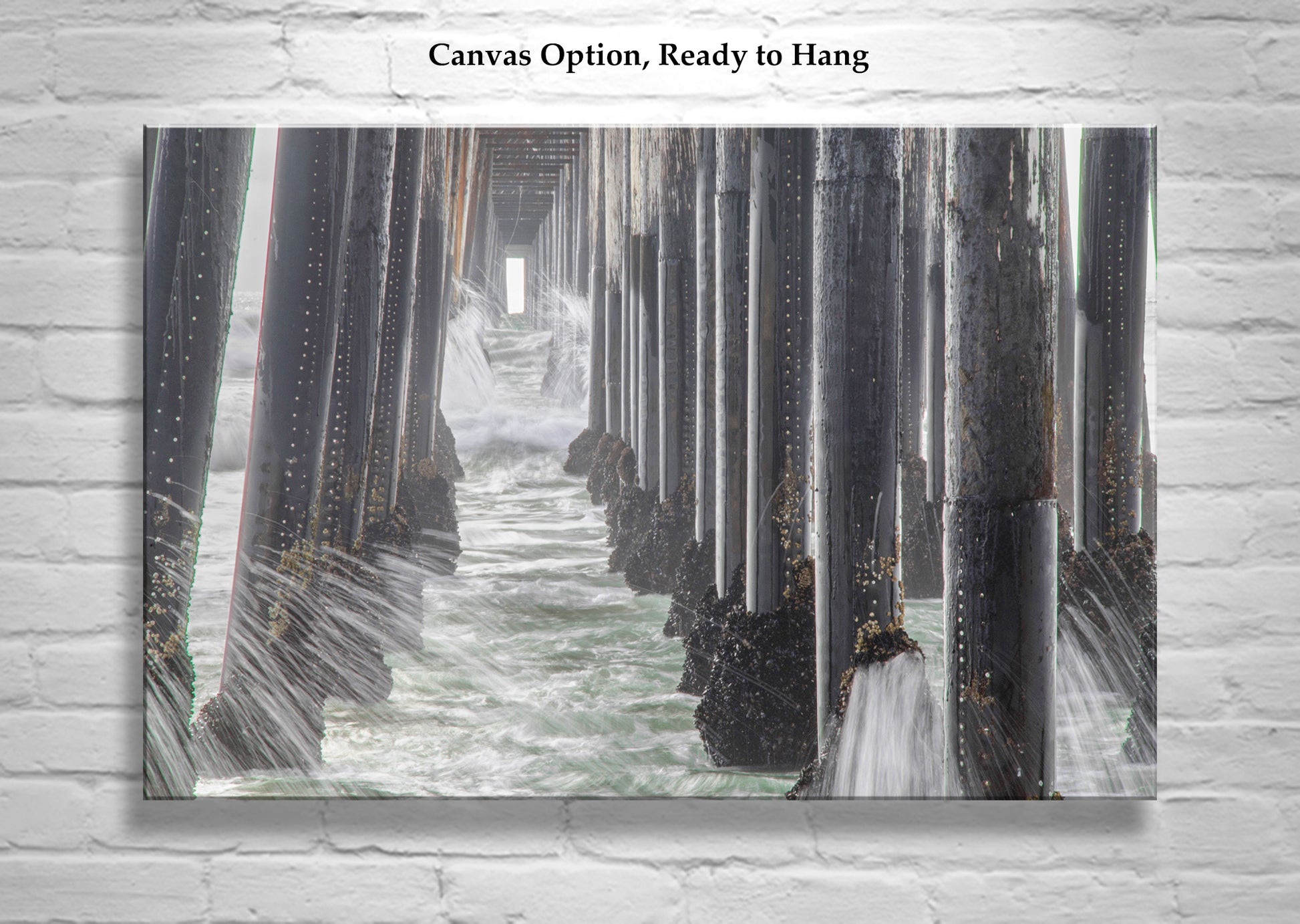 Beautiful ocean under-pier art! My outstanding Oceanside Pier picture, San Diego California USA, with billions of barnacles to boot! Original, unique signed art by Murray Bolesta.
