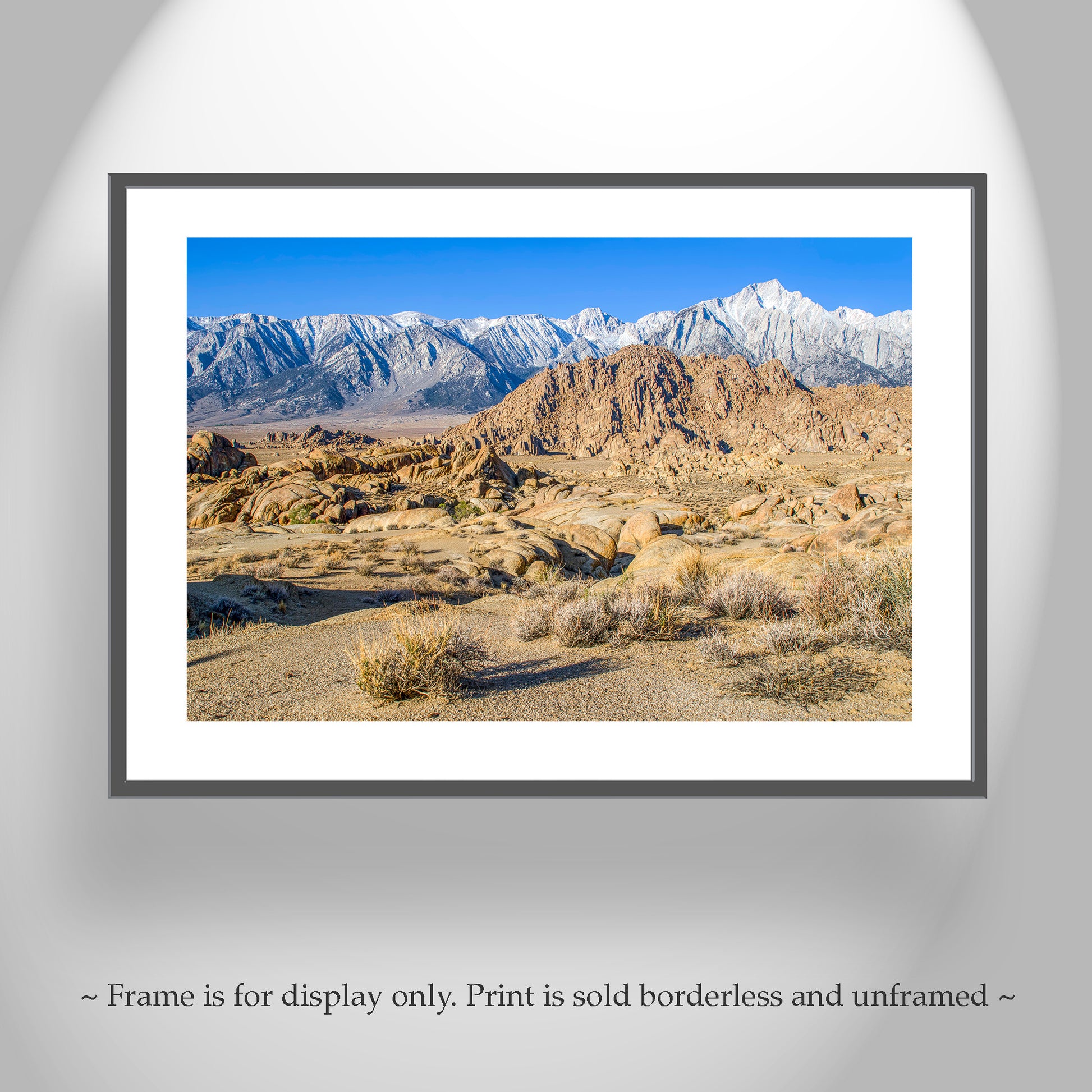 My eastern Sierra Nevada mountains landscape art for your pleasure! These are the southern Sierra Nevada Mountains at Mt. Whitney I captured on a sublime spring morning in Alabama Hills. Original, unique signed art by Murray Bolesta!