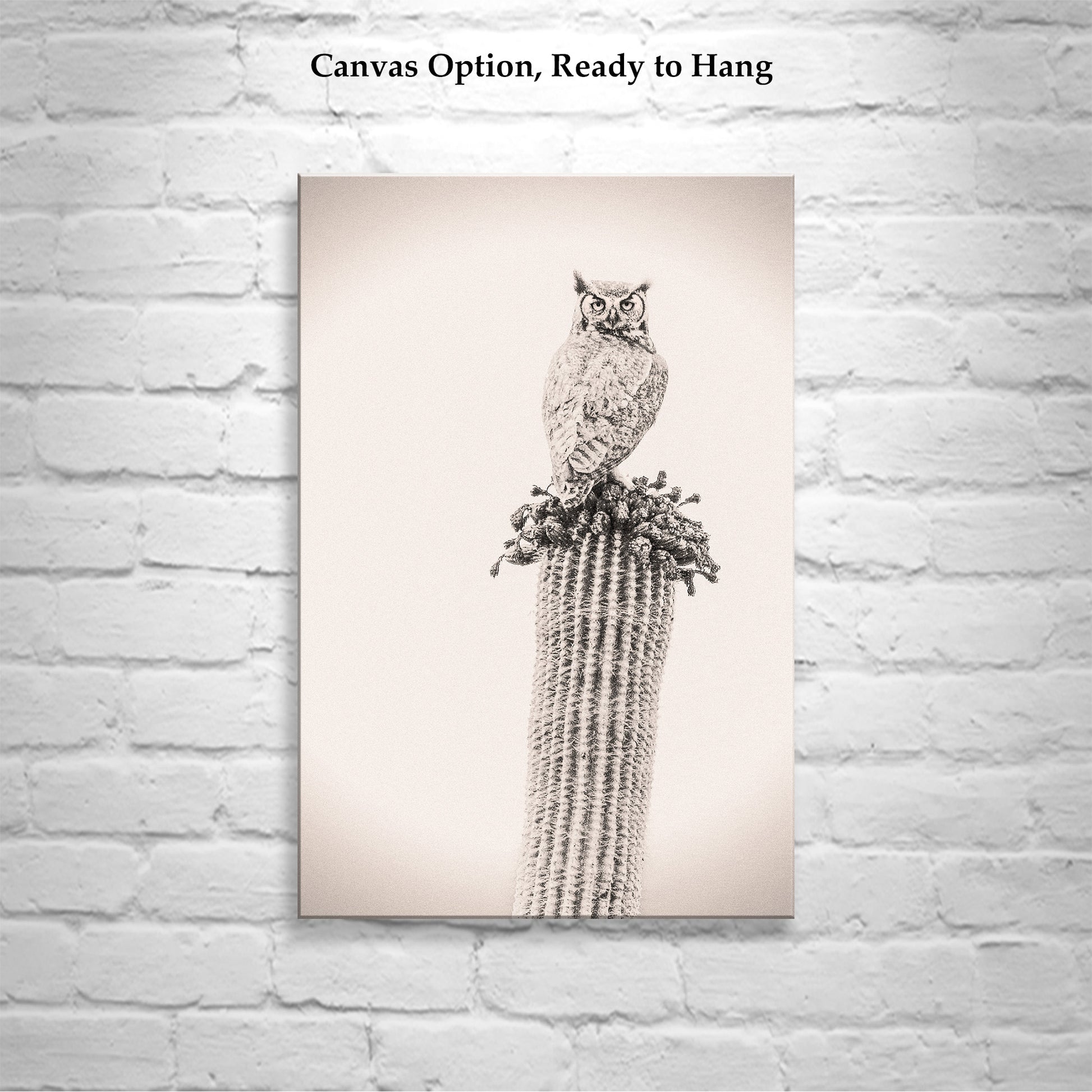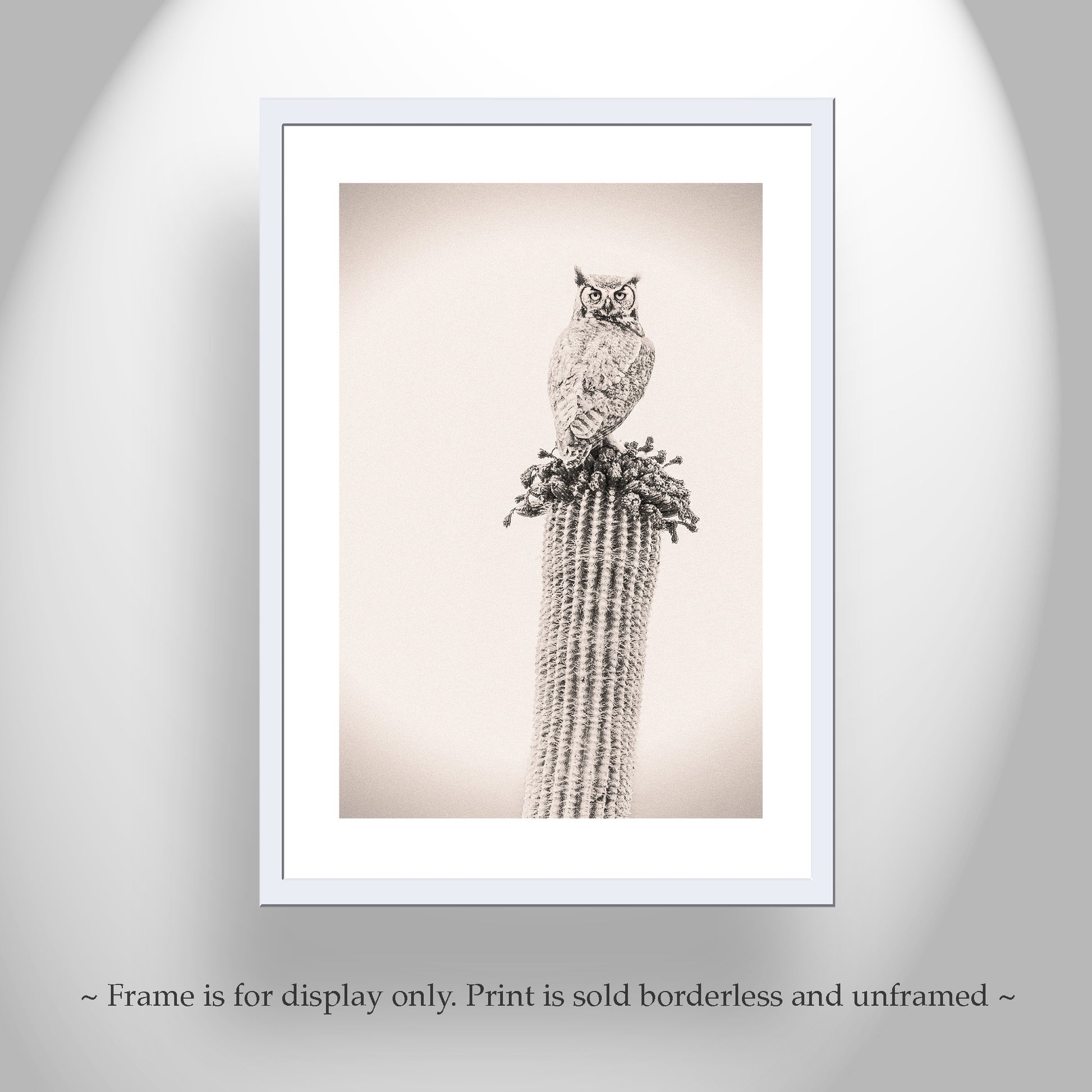 My Great Horned owl bird with desert cactus wall decor for your pleasure! I captured this scene in the wilderness of Ironwood Forest National Monument of Arizona, planet Earth. Original, unique, signed art photography by Murray Bolesta!