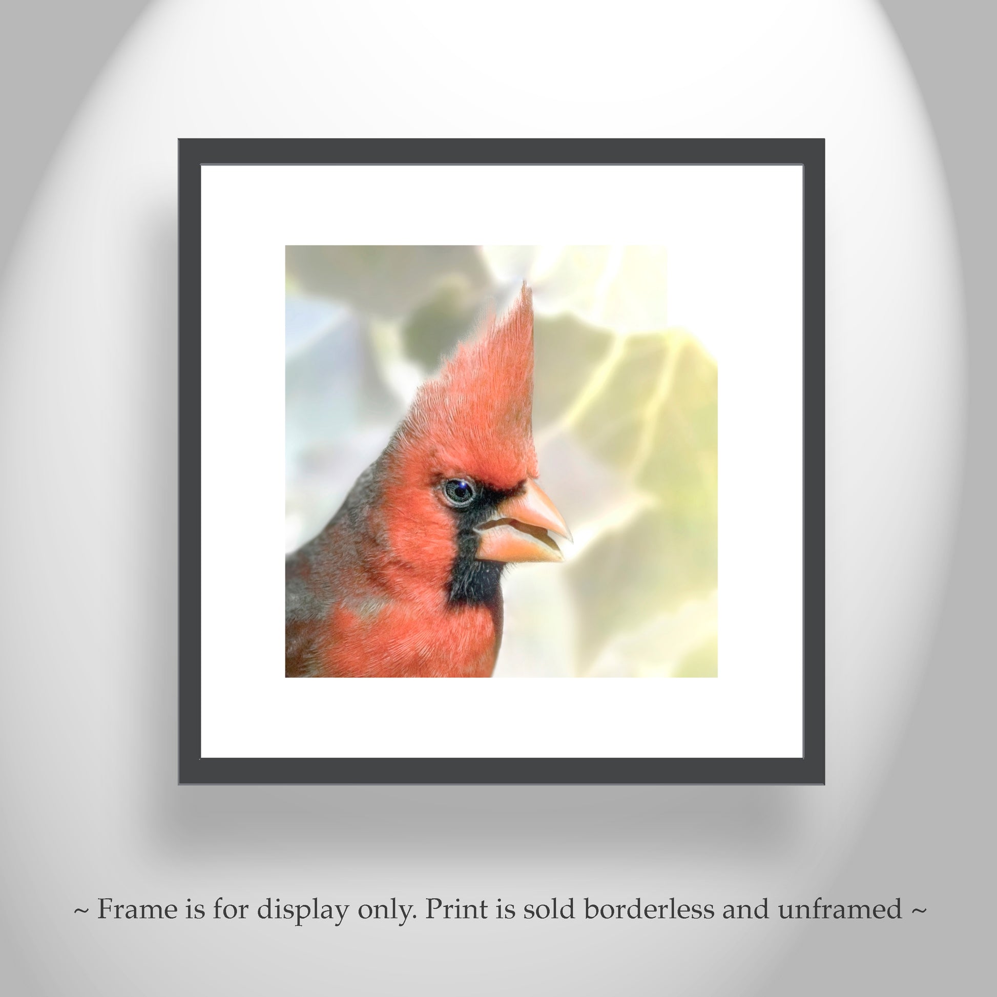 Red Cardinal Bird Art on Square Print as Bright Spring Nature Decor