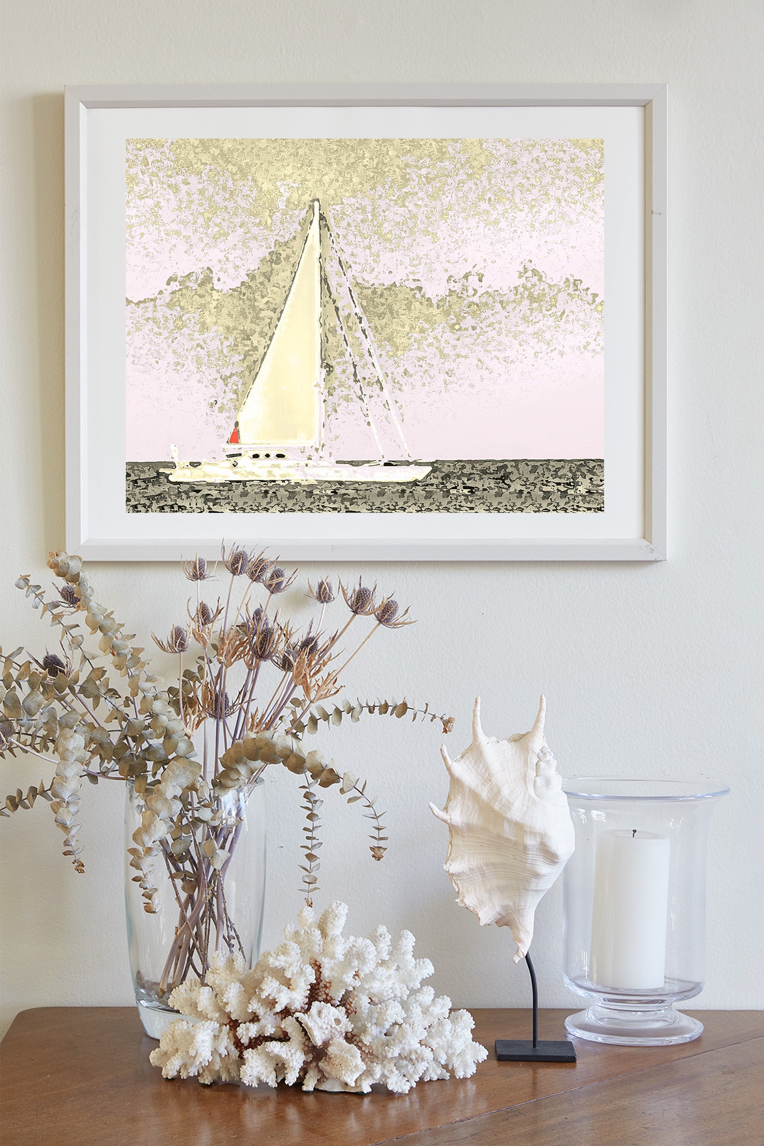 Sailing Wall Art with Sailboat at Block Island in Mellow Yellow