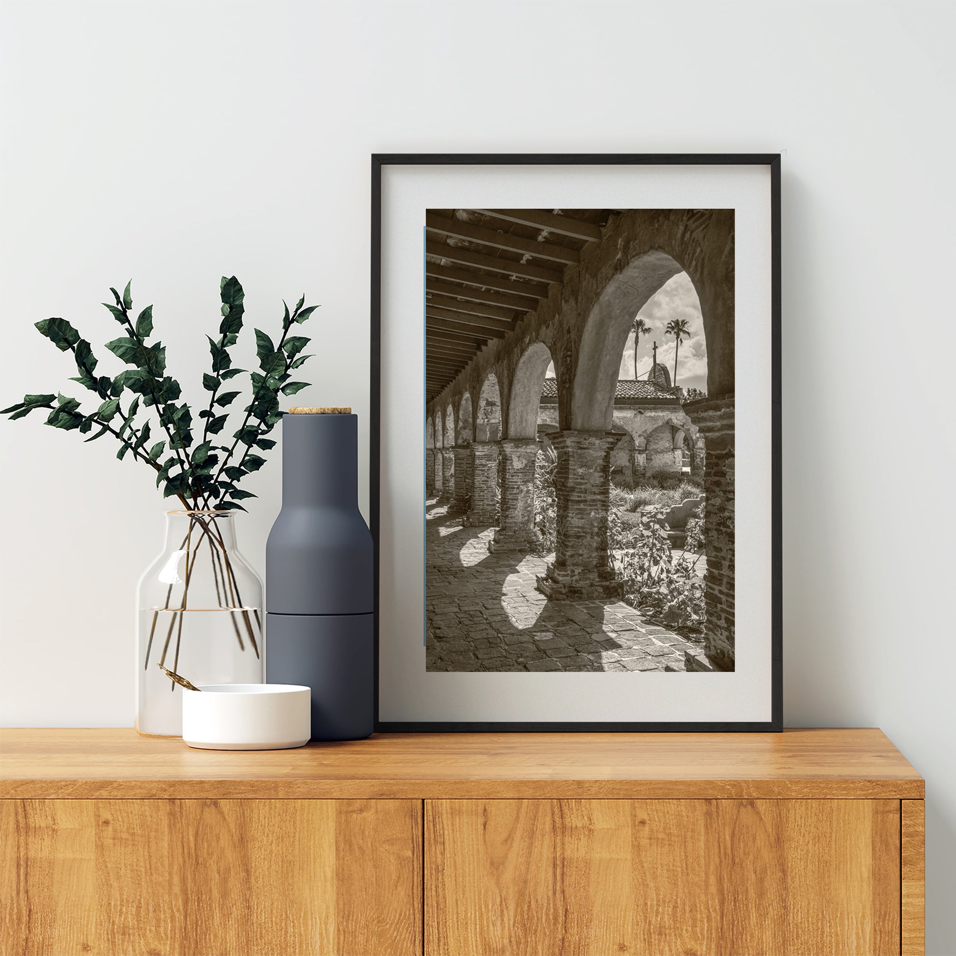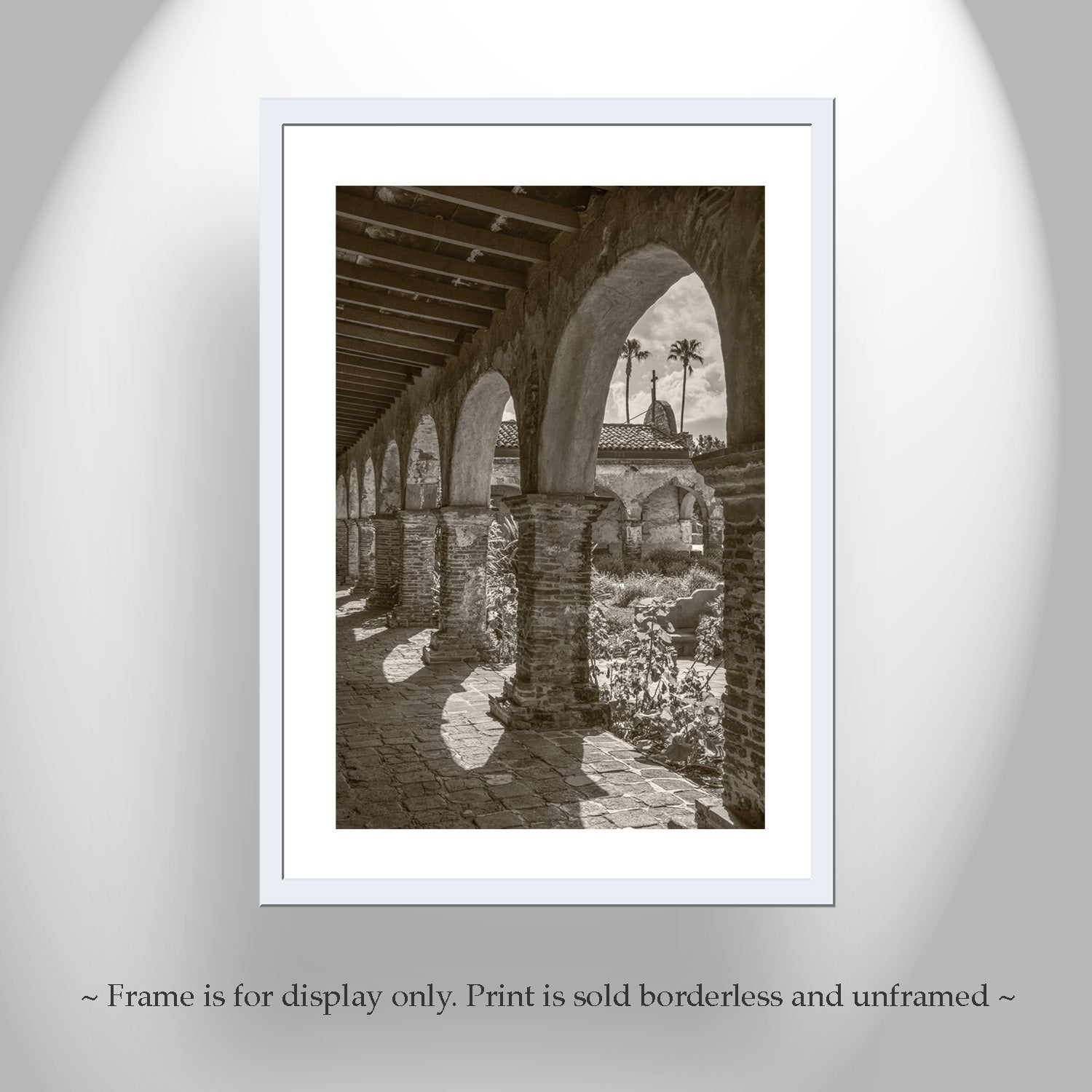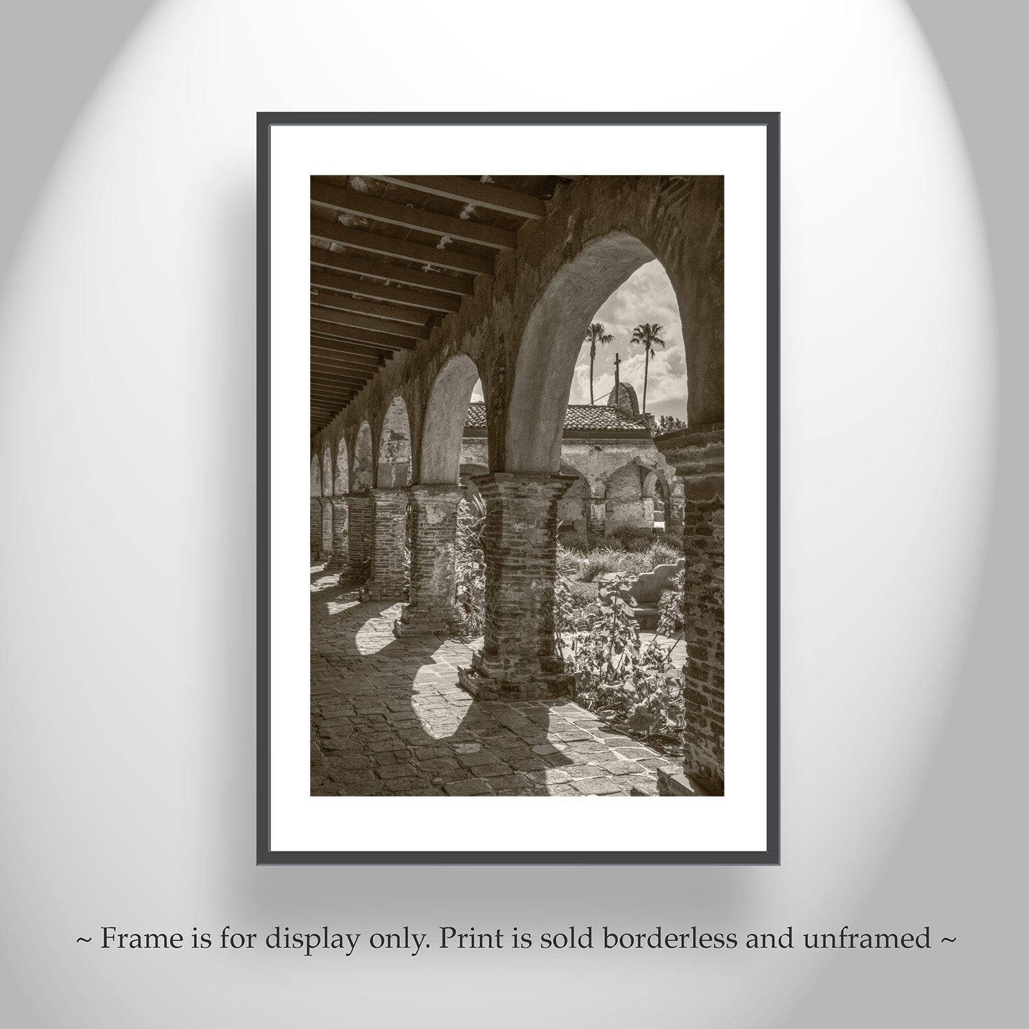 Beautiful art! Marvelous Mission San Juan Capistrano for your walls. This is my sepia-toned art print of the famous California colonial mission: follow me, and the swallows, to San Juan Capistrano! This historic gem is a restored precious relic of Old California, seen here at its charming south wing. Original, unique signed art by Murray Bolesta!