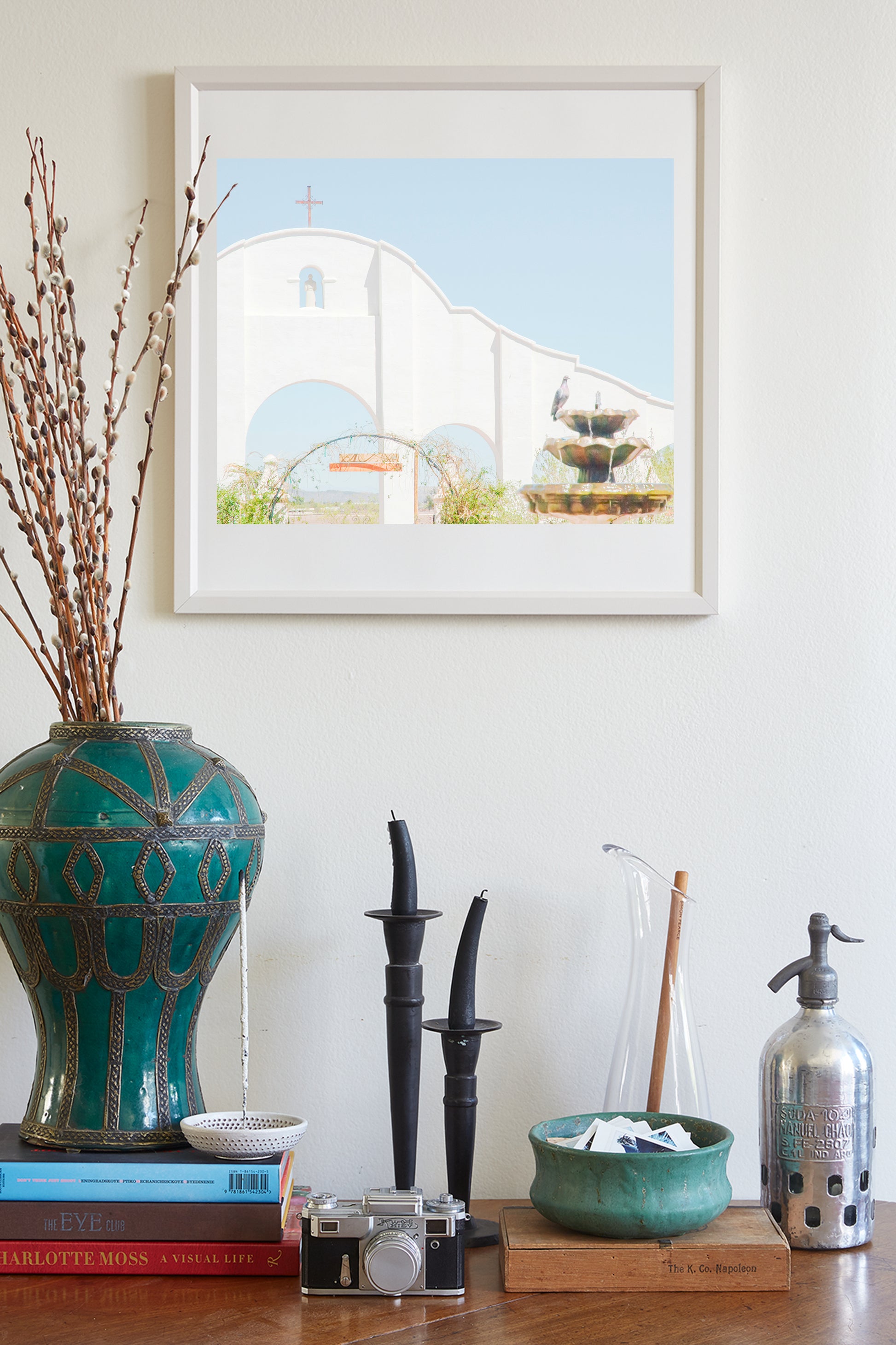 My terrific Tucson Arizona architecture art for your viewing pleasure. This is a mission church courtyard scene, with a dove at the fountain at a precious southwest USA heritage site: Mission San Xavier del Bac!