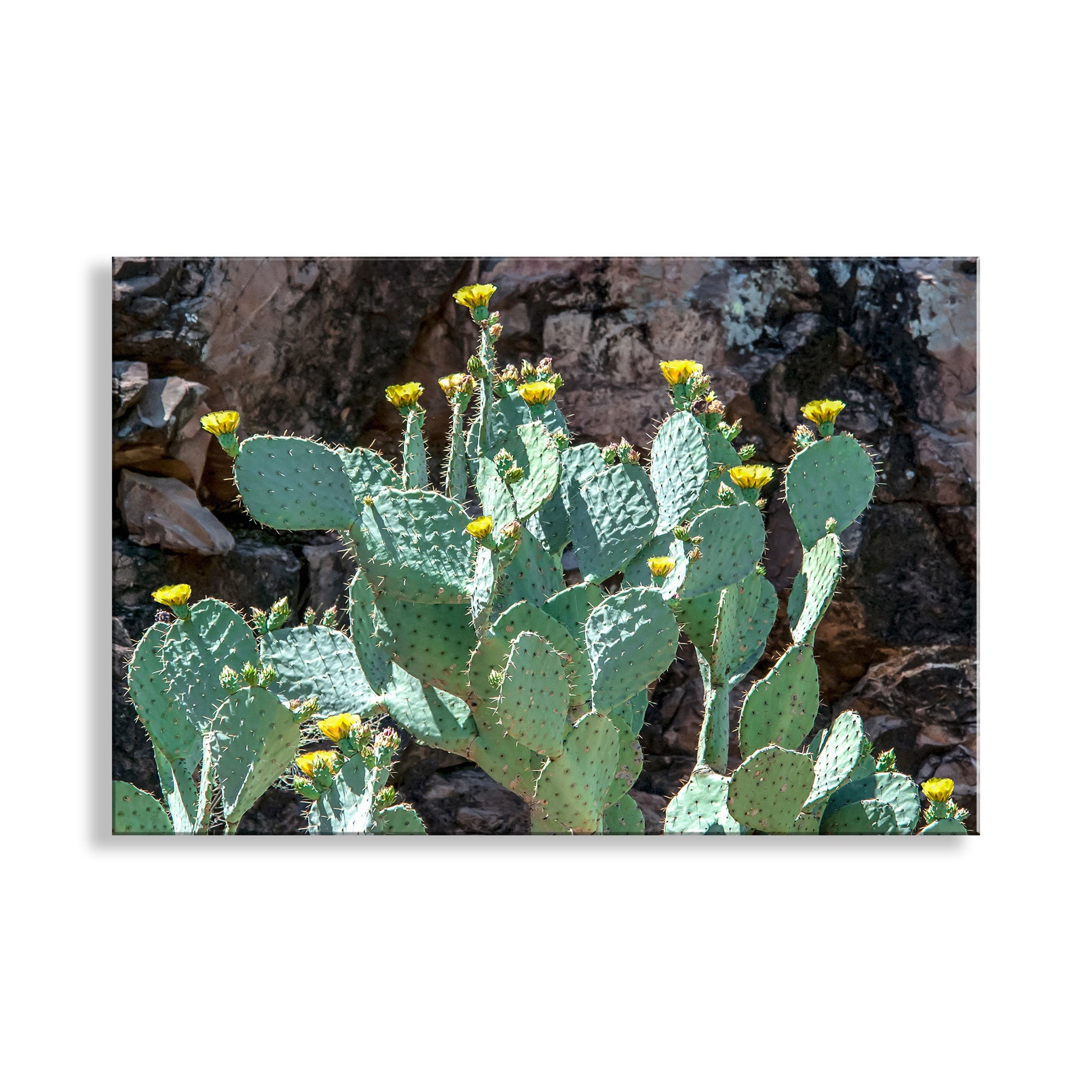 Southwestern Desert Canyon Art with Prickly Pear Cactus Flowers