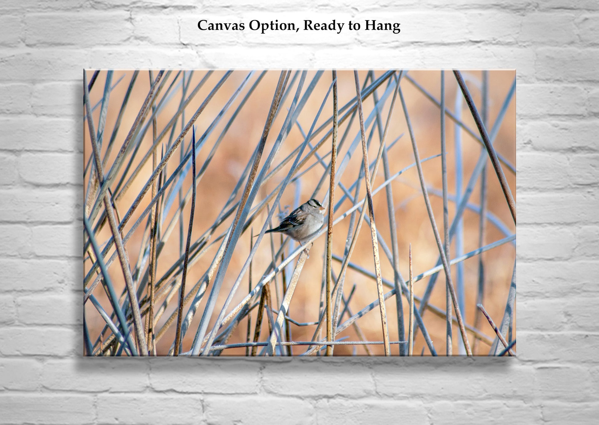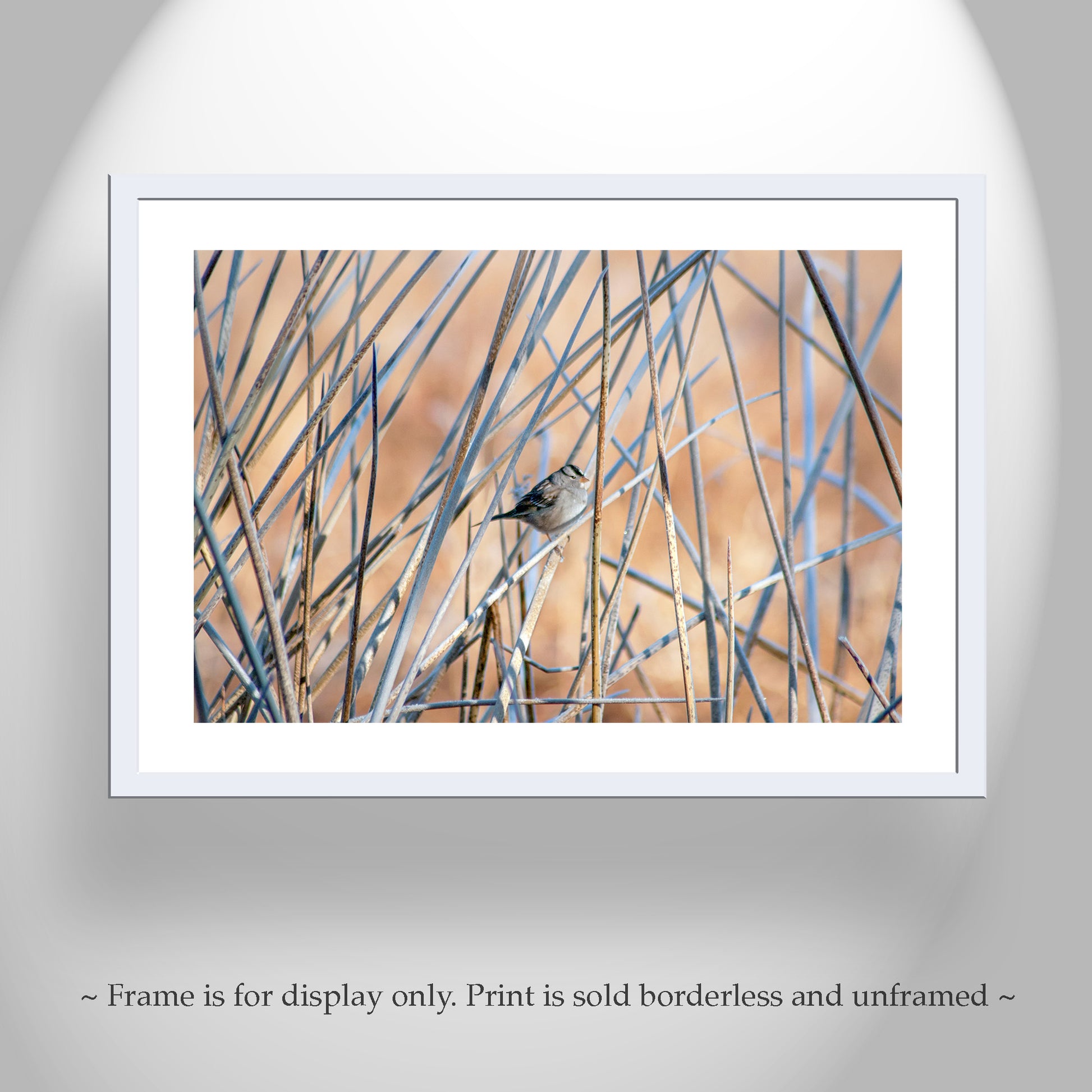 Sparrow Bird Picture in Reeds and Cattails as Fine Art Nature Wall Decor