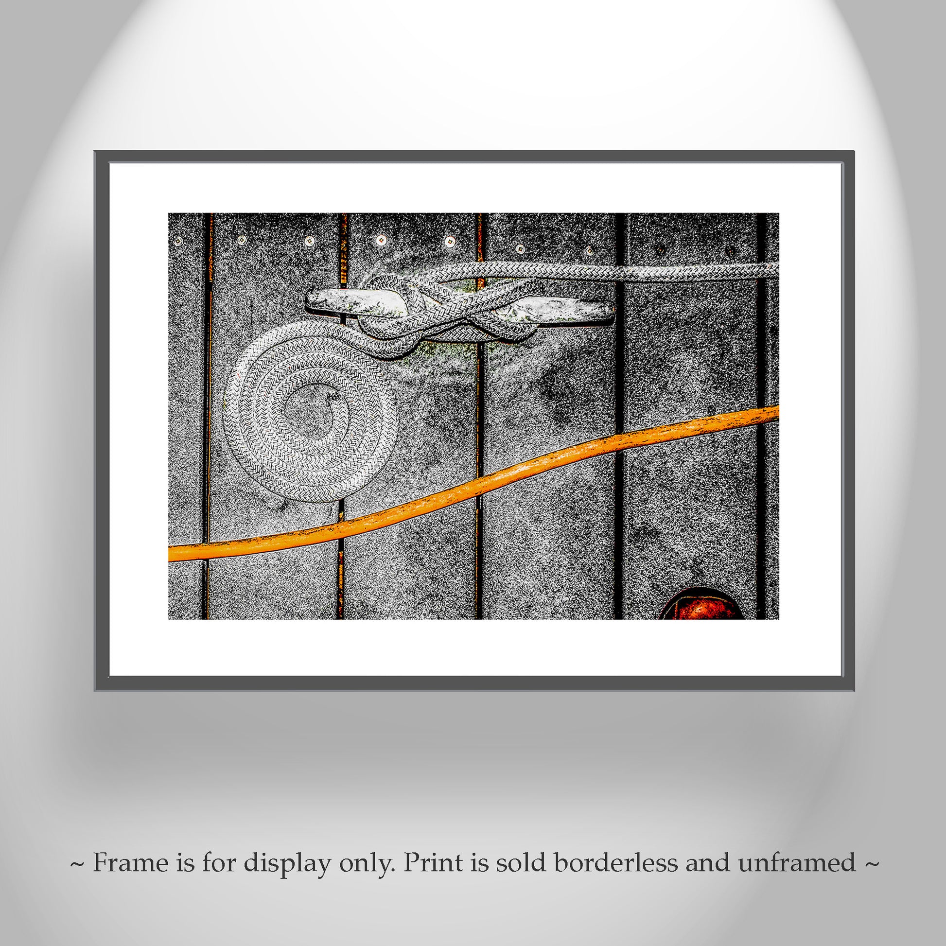 My unique semi-surreal artwork for the nautical person in your life! A beautifully tied mooring line and a cleat. Captured at a San Diego California harbor. Original art by Murray Bolesta!