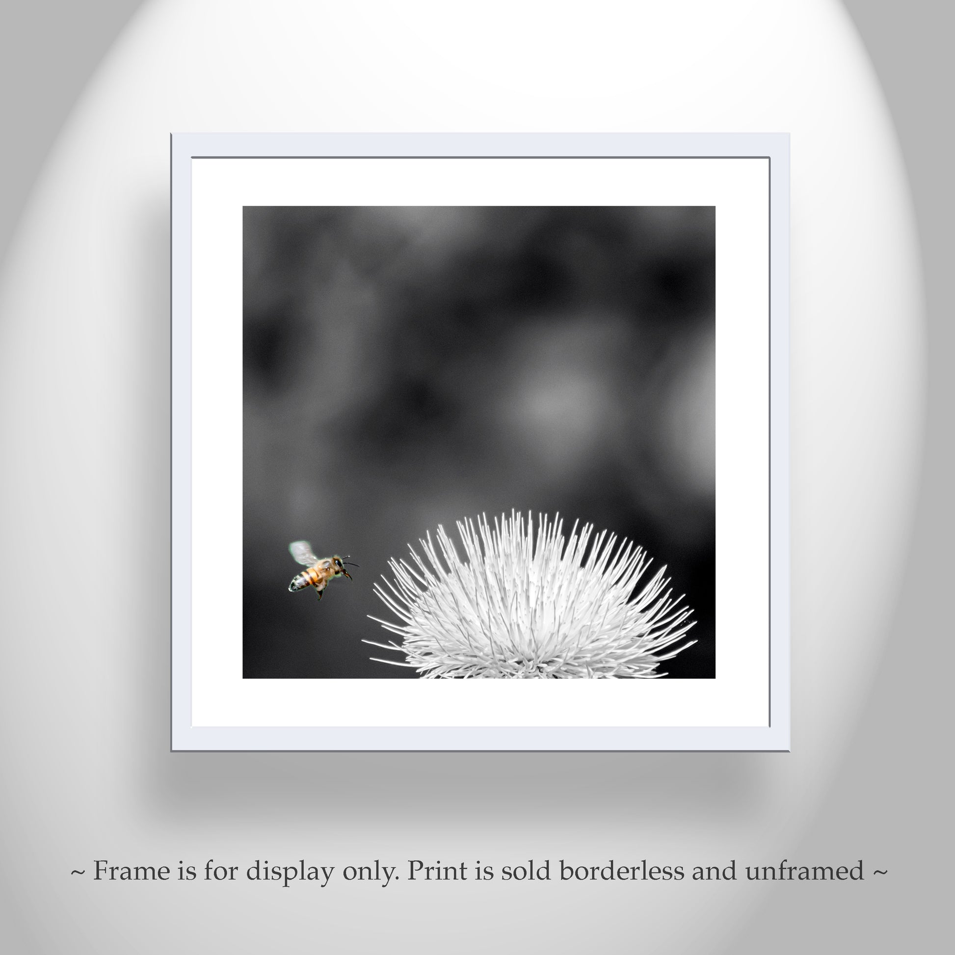 Minimalist nature art to maximize your wall space! This is a wild thistle flower with a bumble bee pollinator on approach. I captured this scene near the San Pedro River in southern Arizona, planet Earth! Original, unique signed art by Murray Bolesta.
