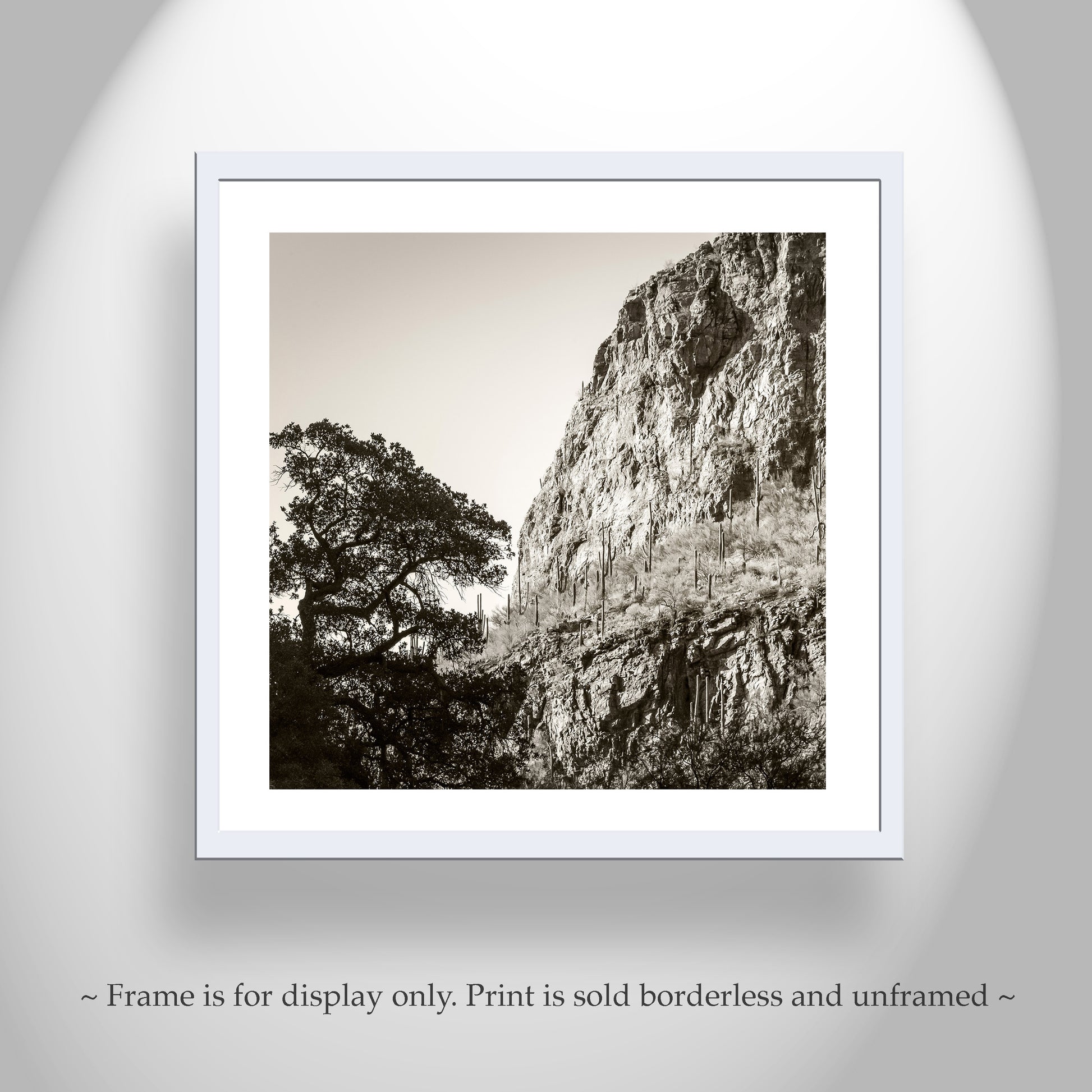 Beautiful desert canyon art! For your walls, an opulent oak tree intervenes in my picture of Esperanza Canyon of the Santa Catalina Mountains, in Tucson Arizona USA! Original, unique signed art by Murray Bolesta.