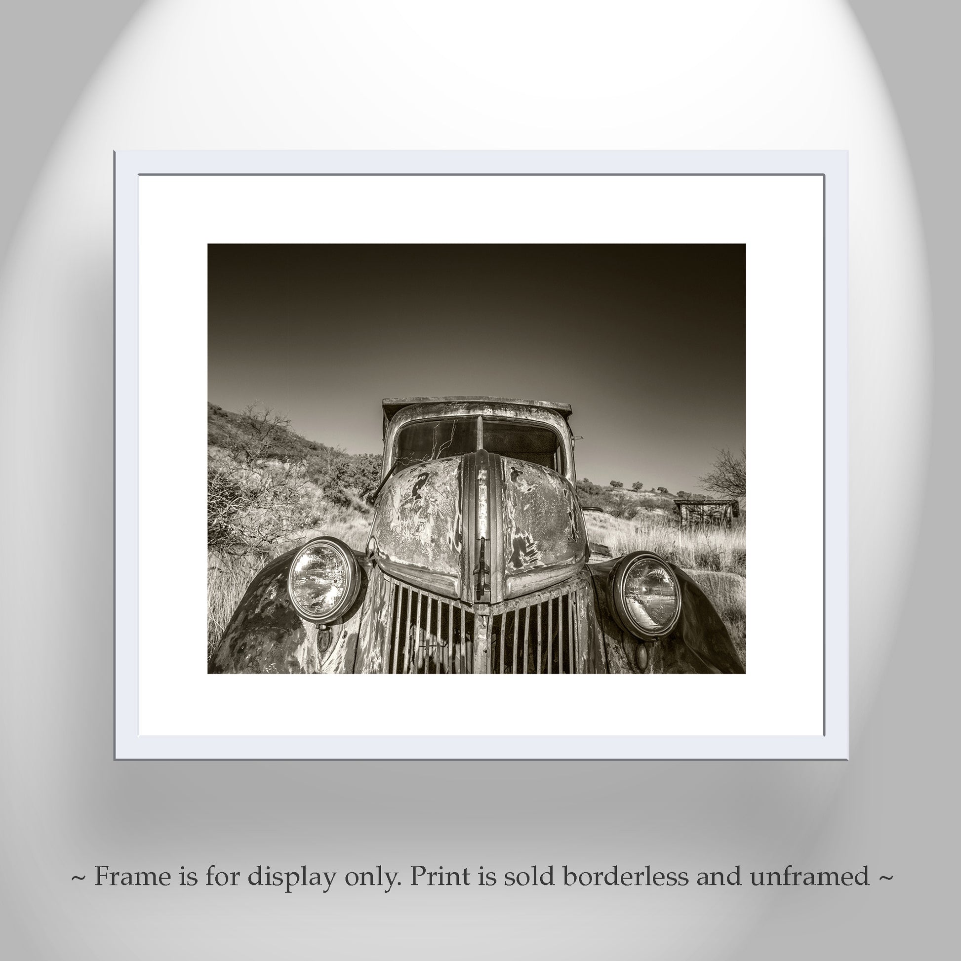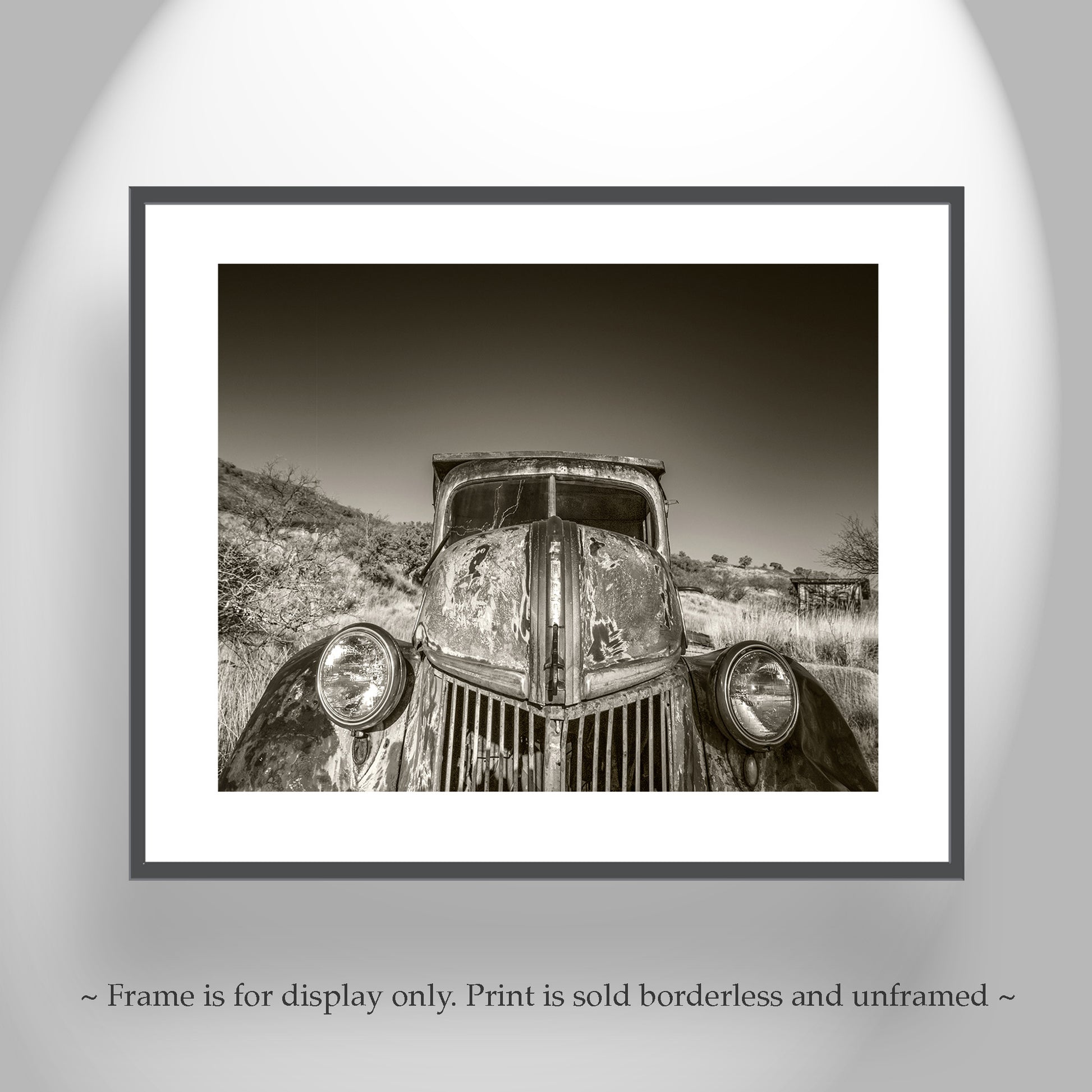 My cool in-your-face Ford truck picture in sepia tone, photographed on the Mexico-Arizona border, planet Earth! A solid truck for your ranch. Original, unique signed art by Murray Bolesta!