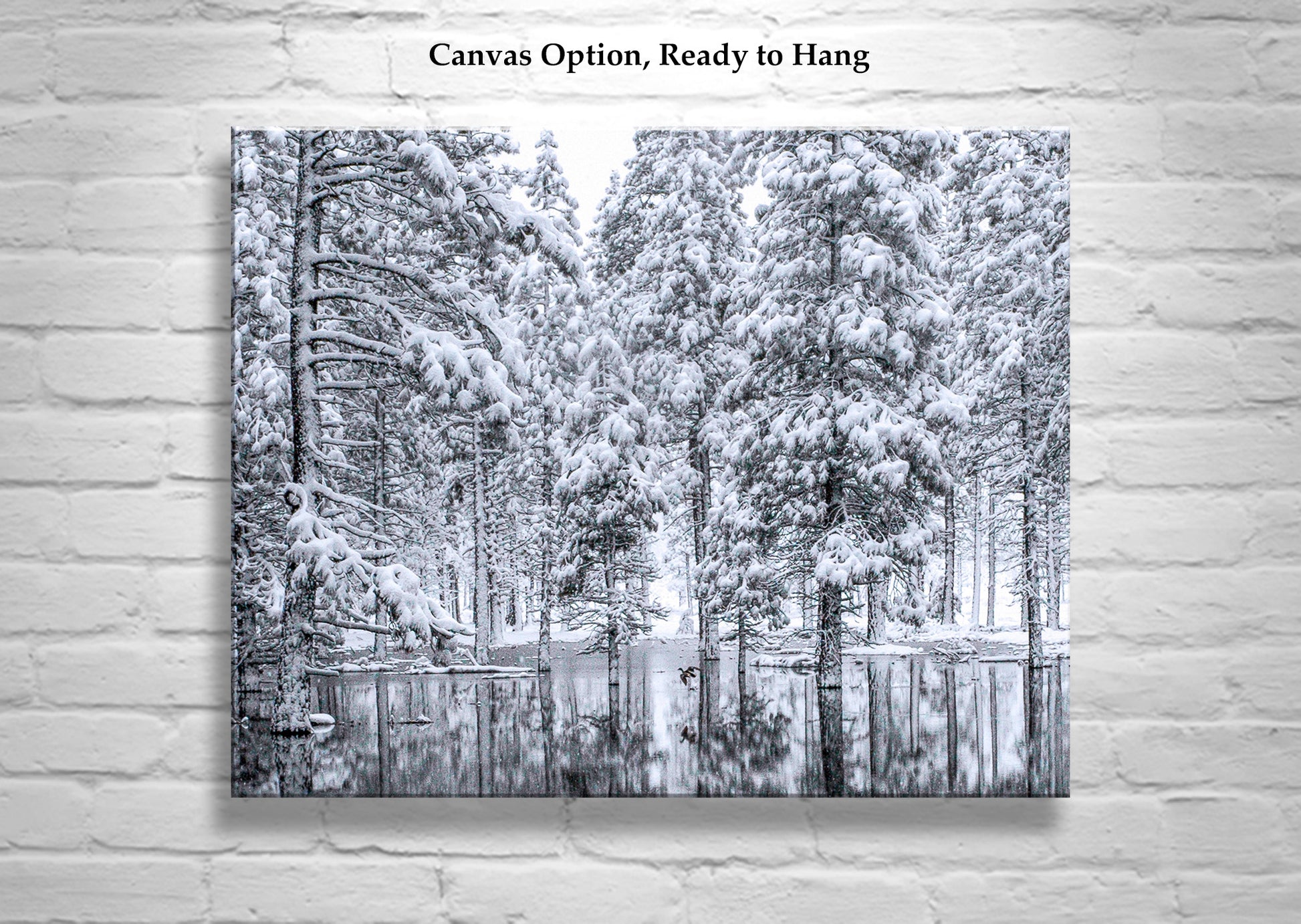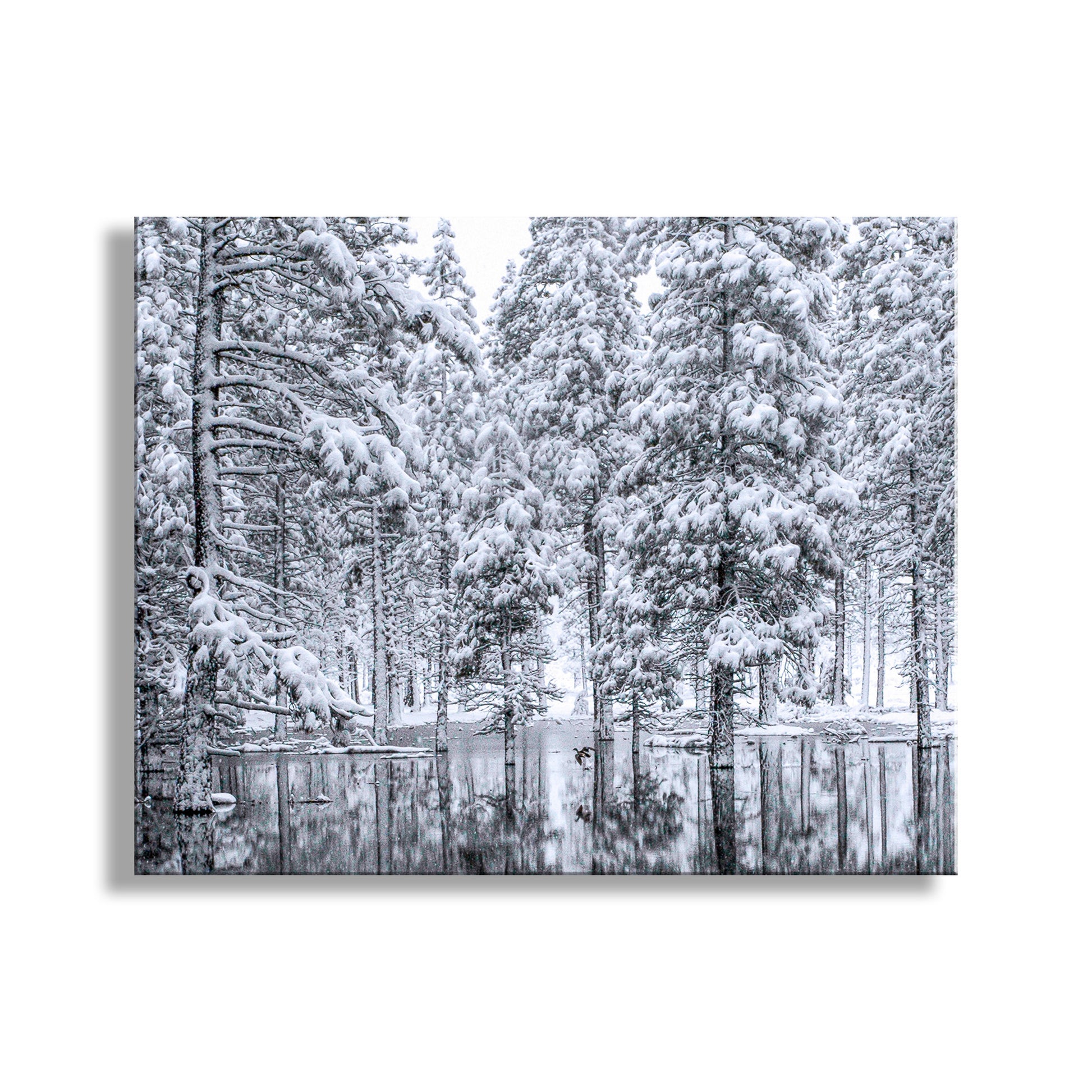 Water Bird Photograph in Winter Snowy Forest Landscape