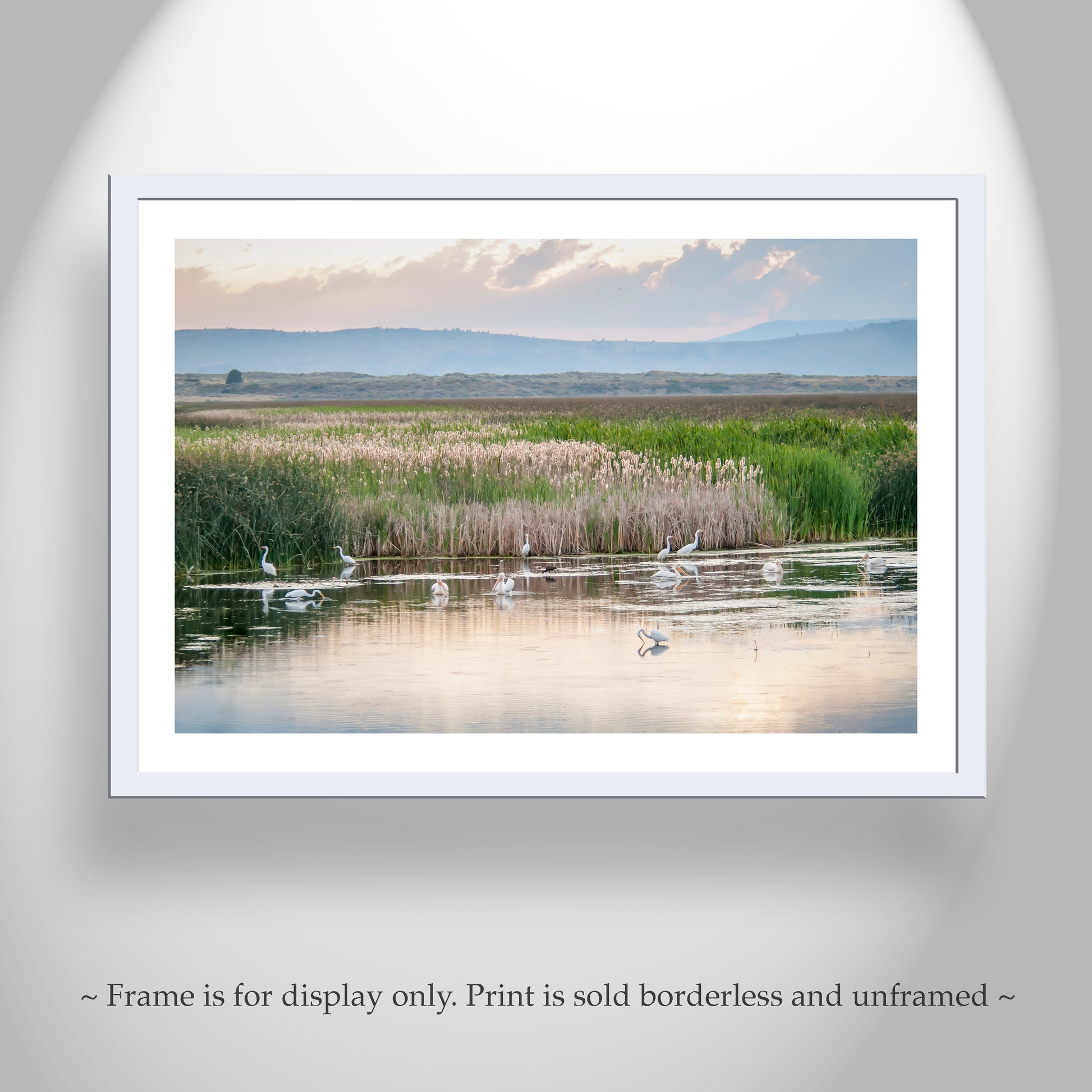 Calming bird art for your walls! Here's an image of cool serenity in wetlands at dusk, captured on camera by me at Tule Lake National Wildlife Refuge, California, planet Earth! Original, unique signed art by Murray Bolesta.