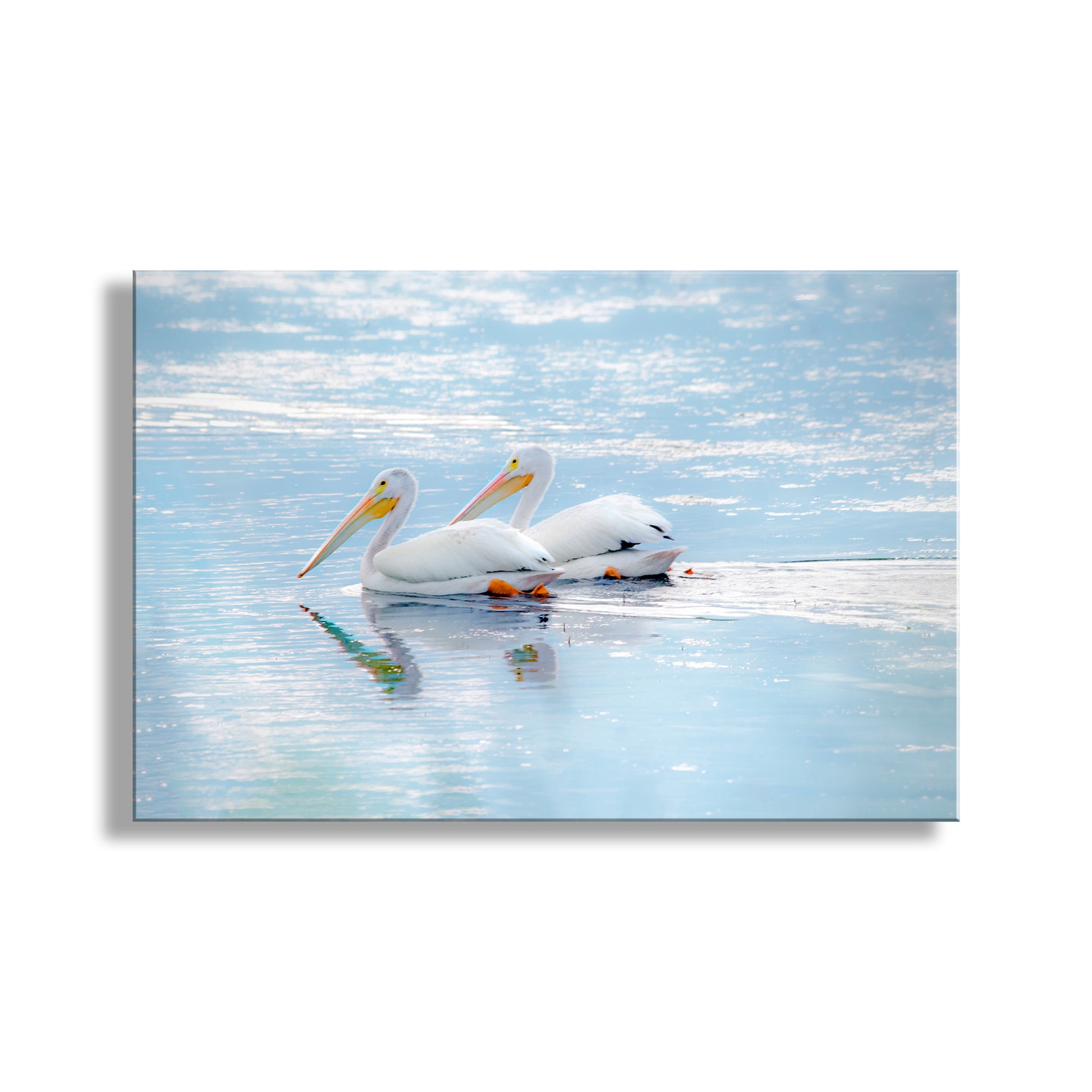 Pretty pastel pelican print for your walls! This pair is paddling the waters of Tule Lake National Wildlife Refuge, Siskiyou County California. Original, unique signed art by Murray Bolesta!