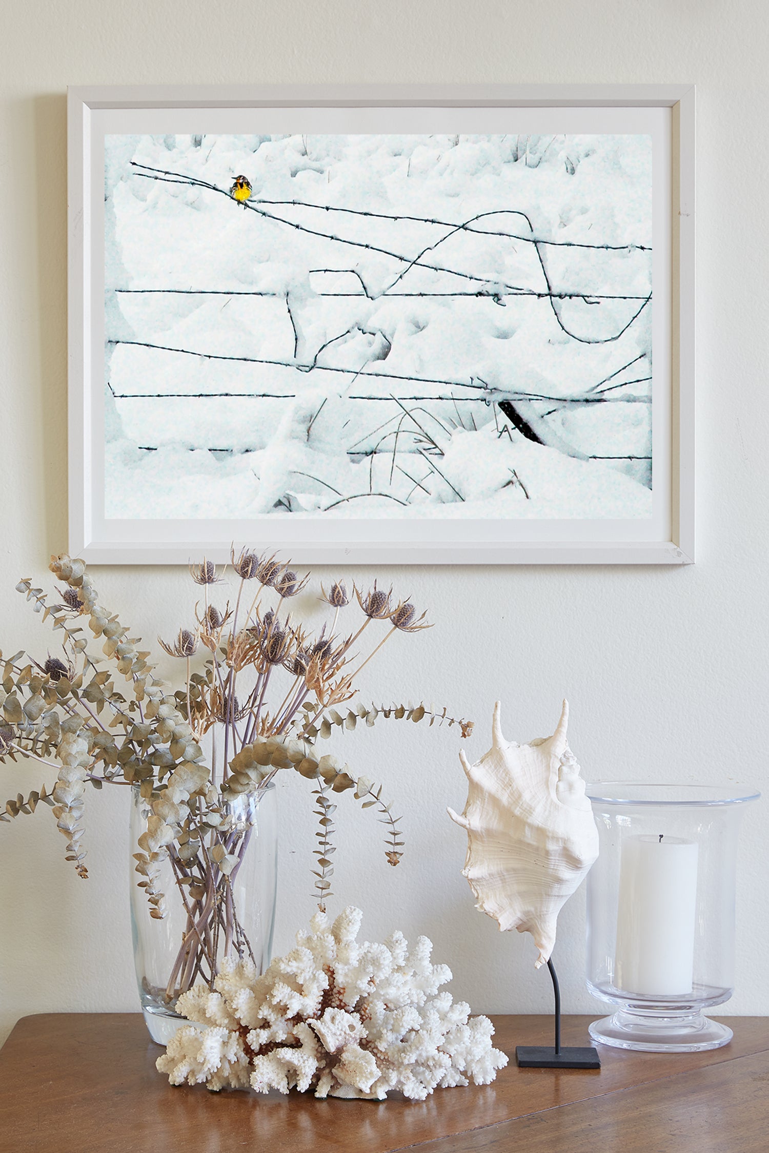 Winter Bird on a Barbed Wire Fence Fine Art Nature Print